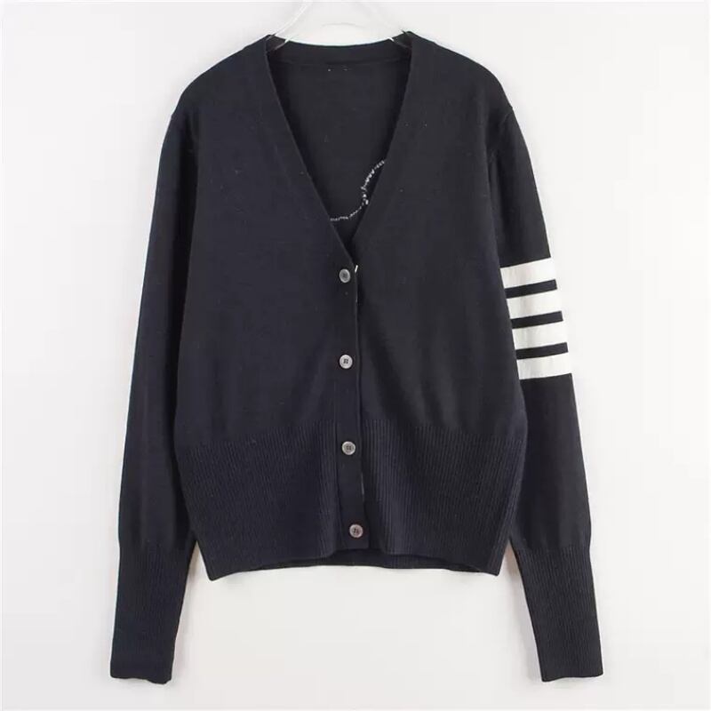 3カラー アニマル柄 犬モチーフ ボーダー Vネック ニット カーディガン *ca048