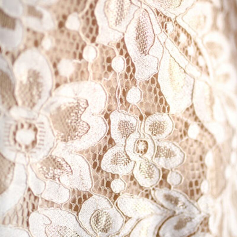 ほんのり透け感のあるスリーブから上品に素肌が見えるエレガントな一着です。