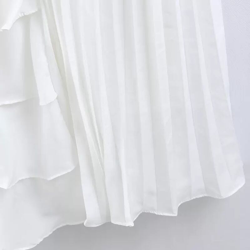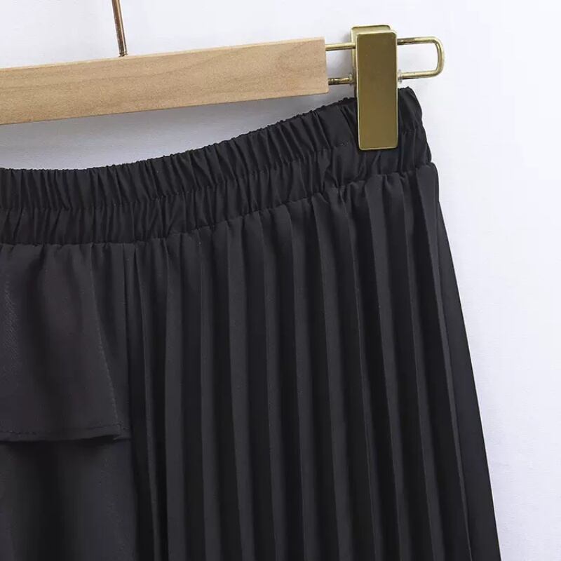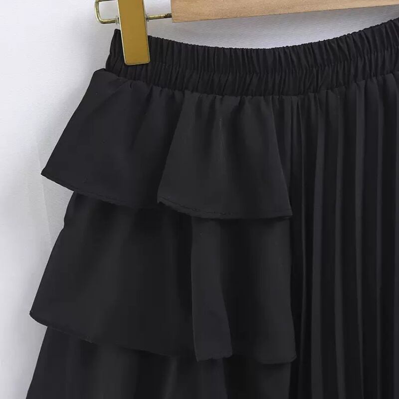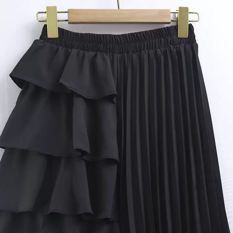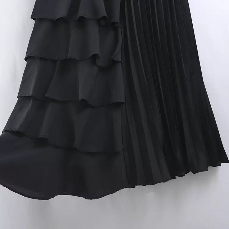 フリル&プリーツがドッキングしたデザインのAラインロングスカートです。