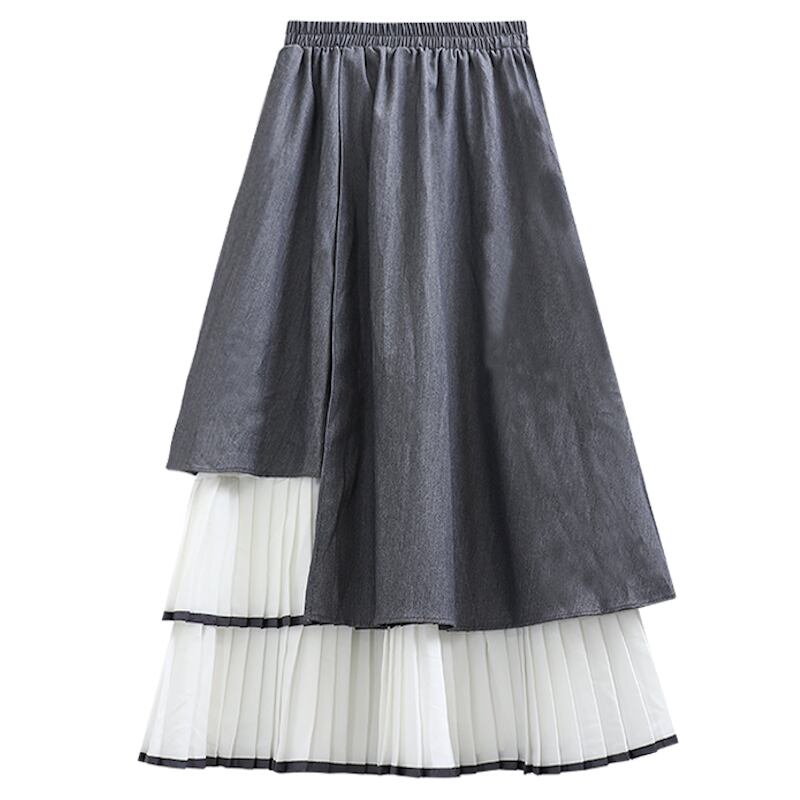 3カラー 大人可愛い プリーツ フリル ふわ揺れ ハイウエスト Aライン フレア ミドル丈 スカート *sk067
