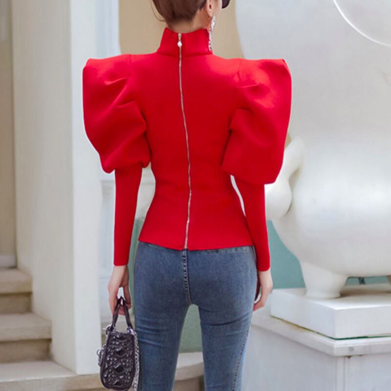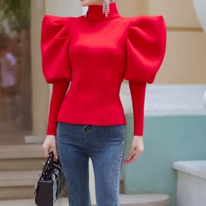 大きめでボリュームのあるパフスリーブが印象的、エレガントな装いのトップスです。