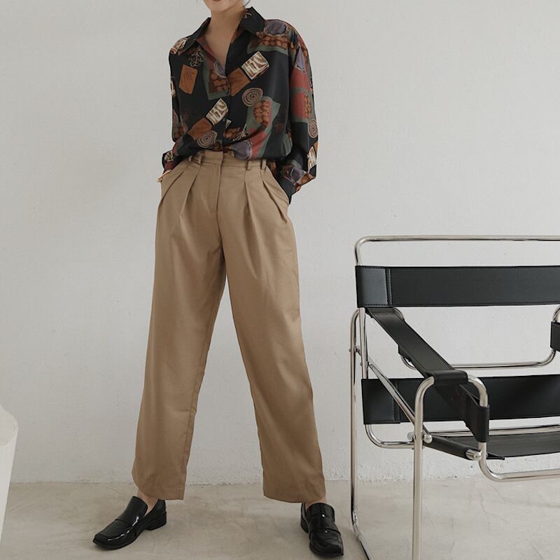 レトロ オイルペインティング フラワーモチーフ ルーズ 長袖 ミディ丈 シャツ ブラウス*bl108