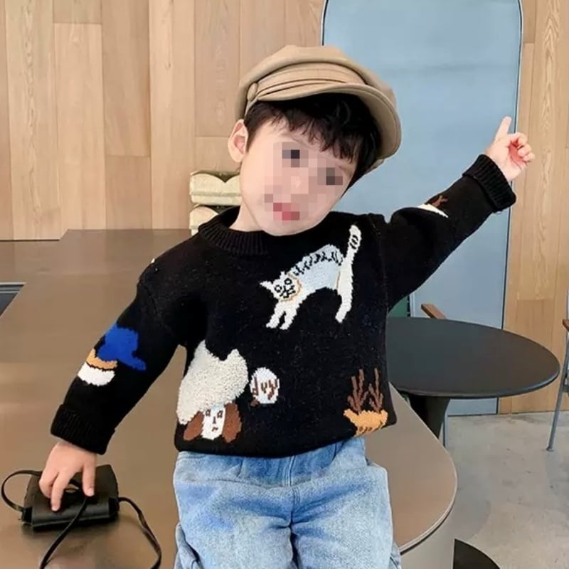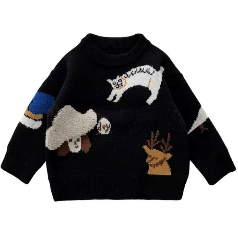 アニマル柄 もこもこ プルオーバー キッズ ベビー ニット セーター *ks082