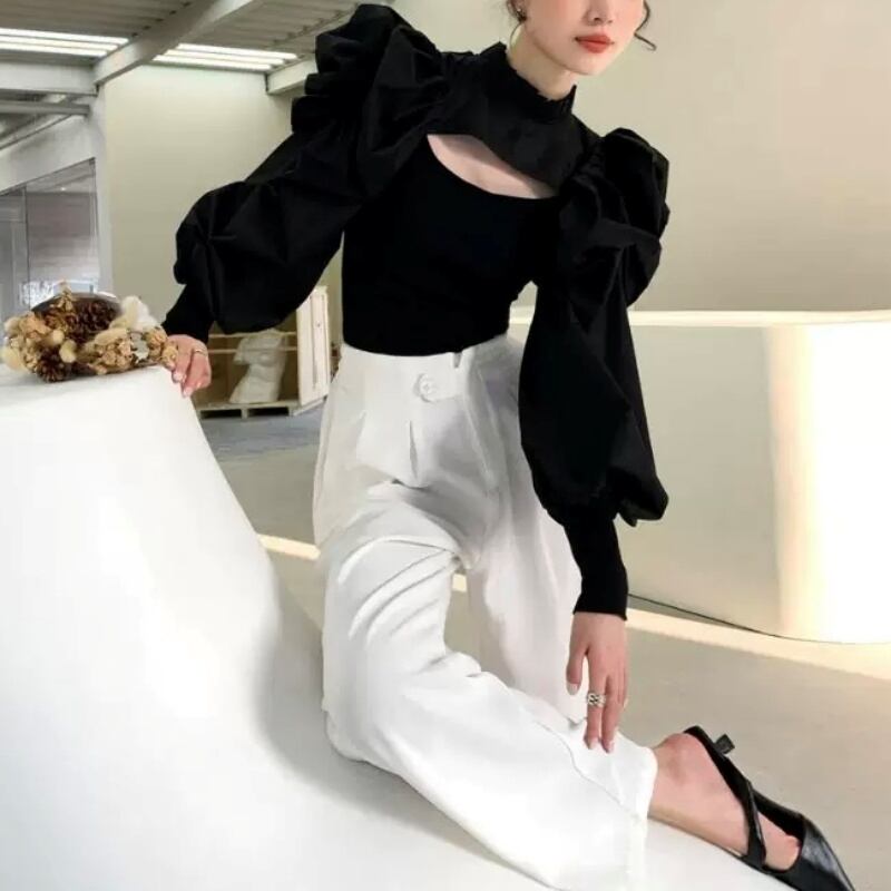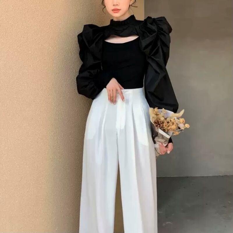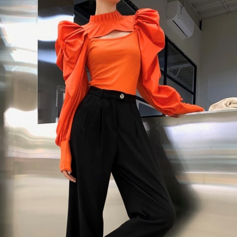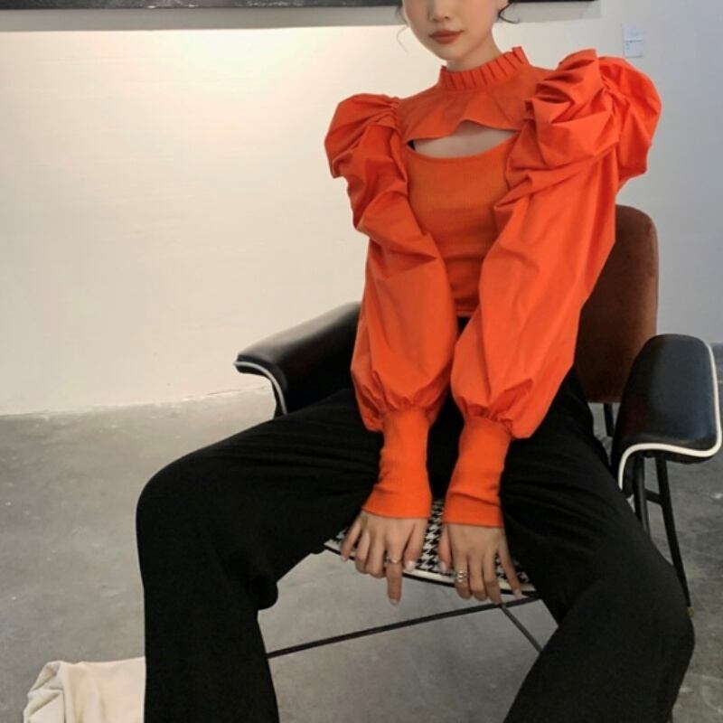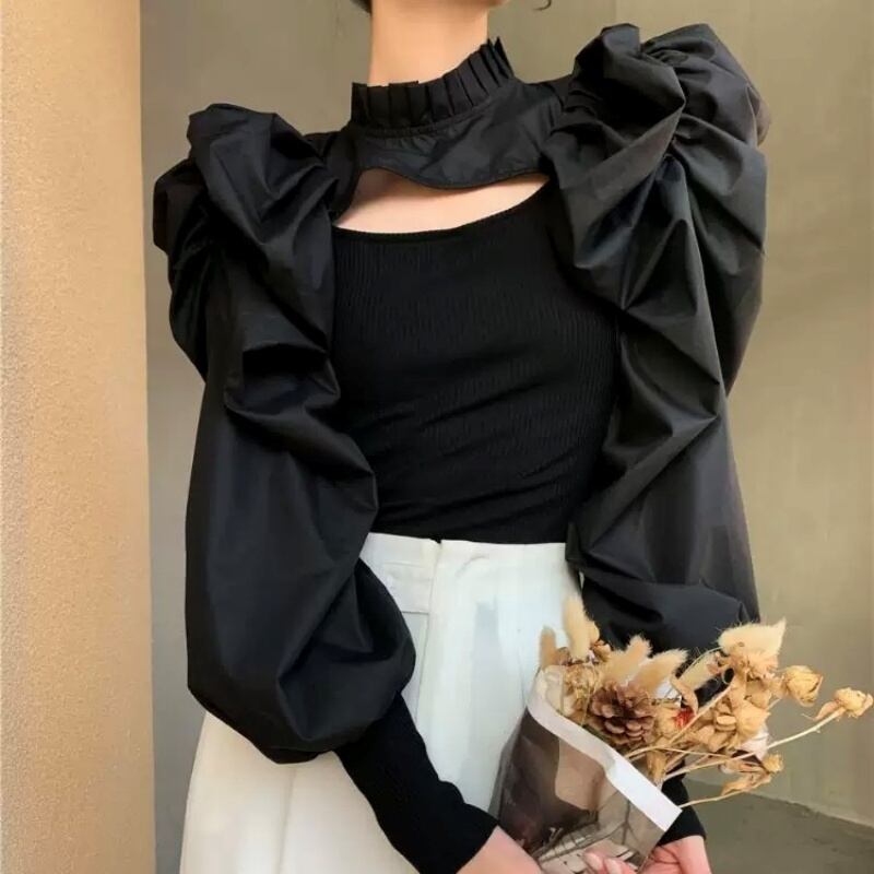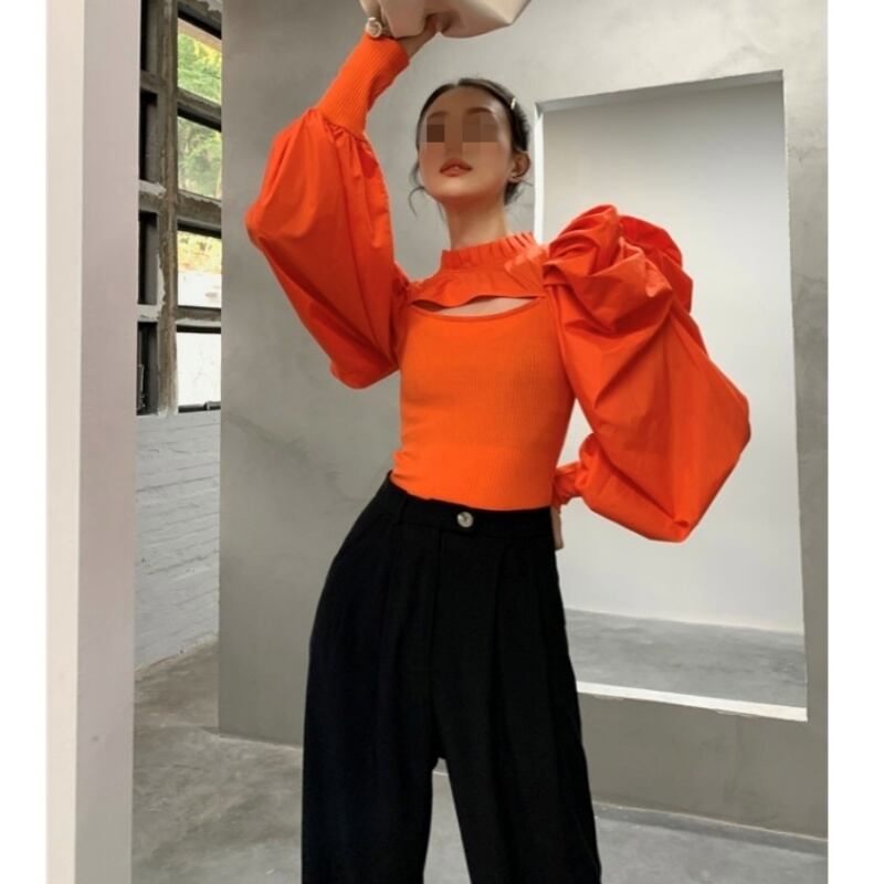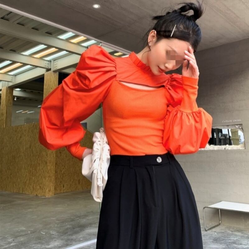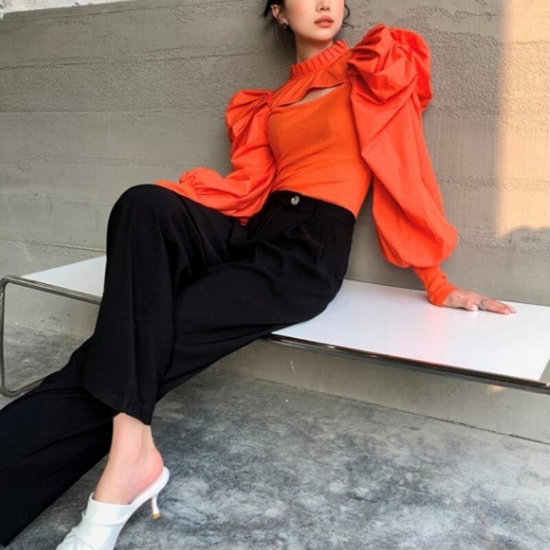 3カラー フェミニン フリル エレガント ボリューム袖 デザインブラウス シャツ *bl114