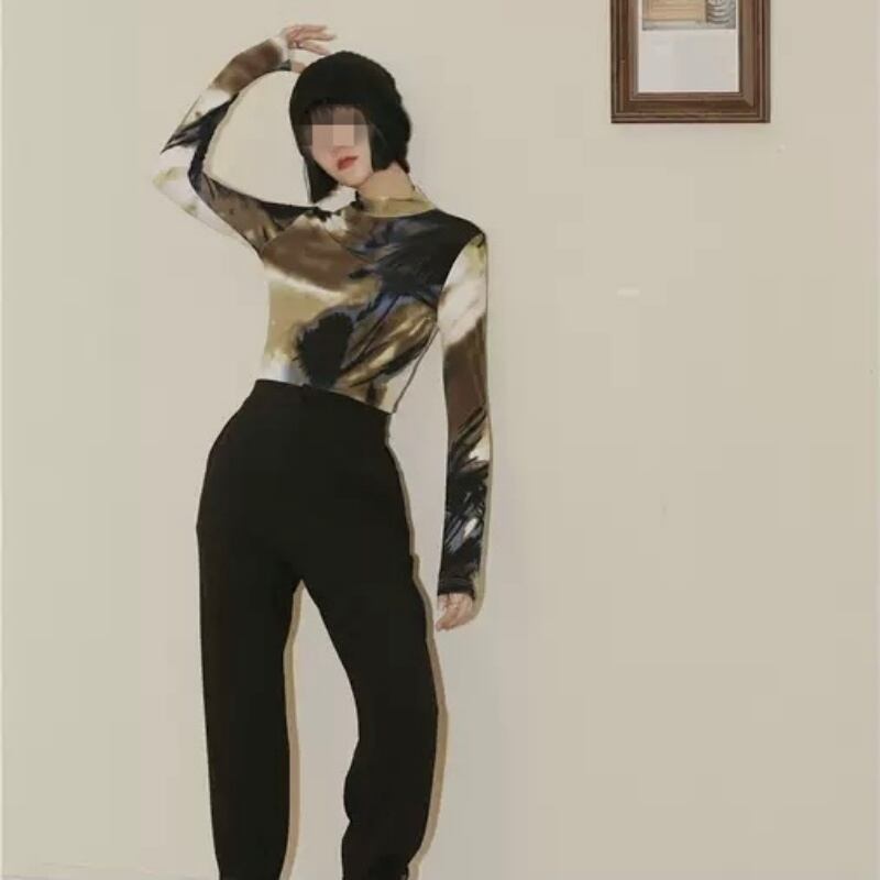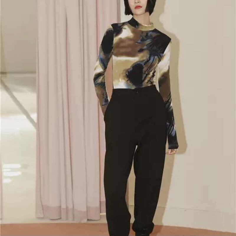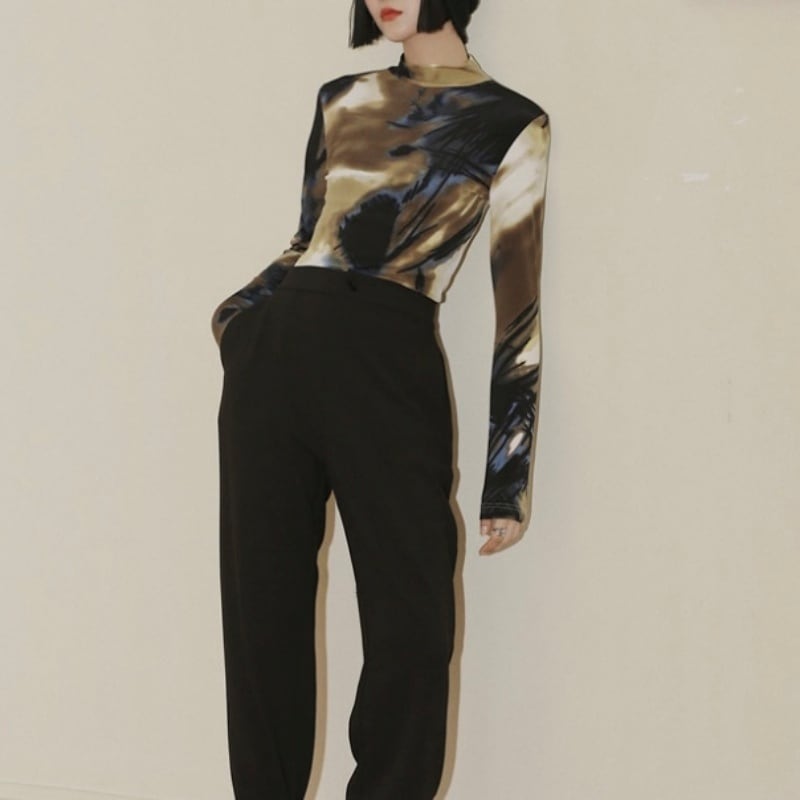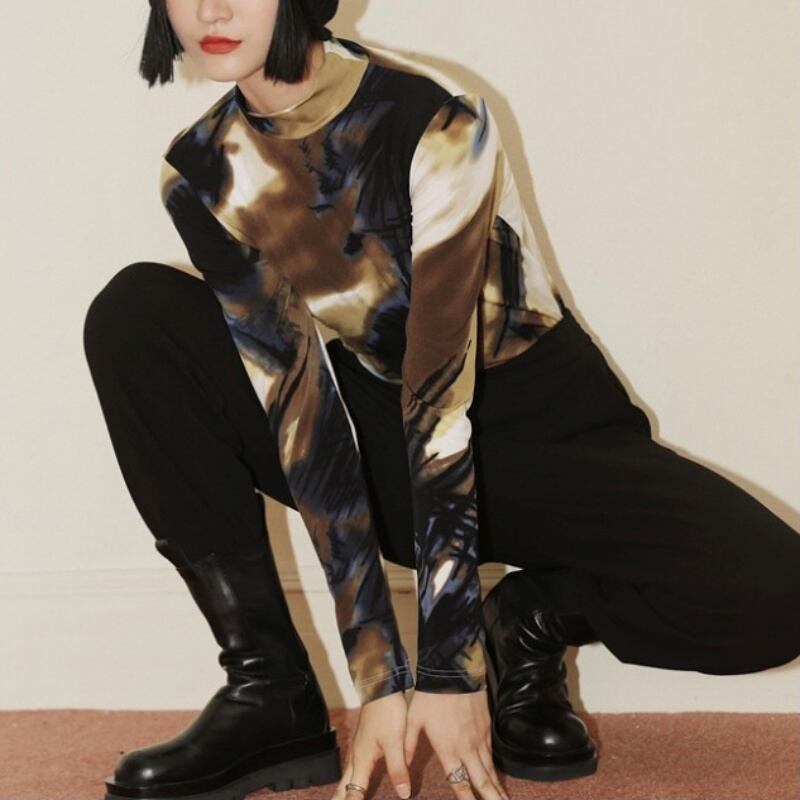 クール レトロ アート ハイネック タイト 長袖 カットソー *bl116