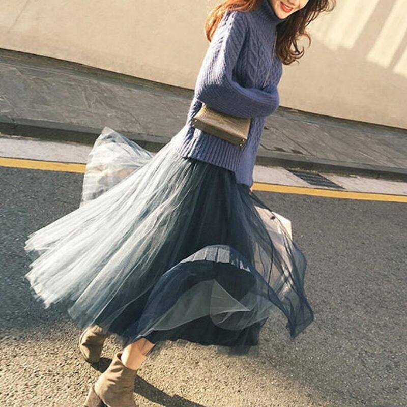 上品さと可愛さを兼ね備えたメッシュロングスカートです。