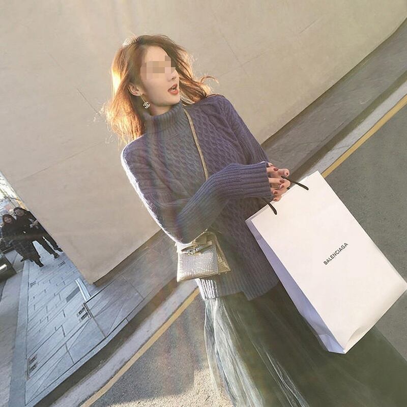 同系カラーのニットセーターとのセットアップもおすすめコーデです。