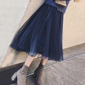 無地 きれいめ フェミニン メッシュ ミモレ丈 ロング フレアスカート セットアップ可 *se017