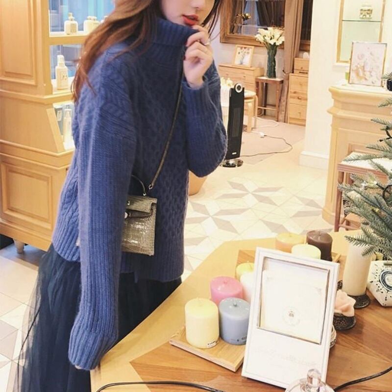 無地 きれいめ タートルネック プルオーバー ケーブルニット セーター セットアップ可 *se018