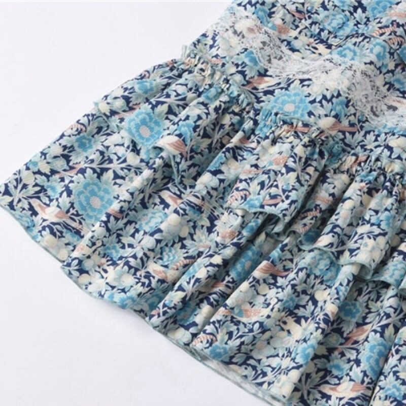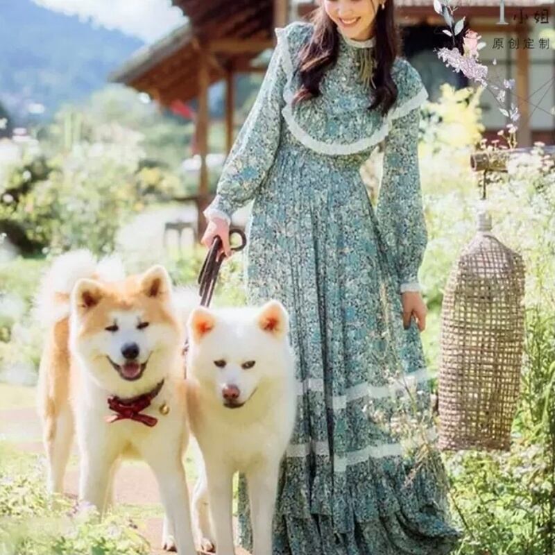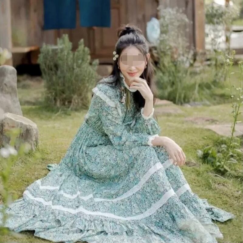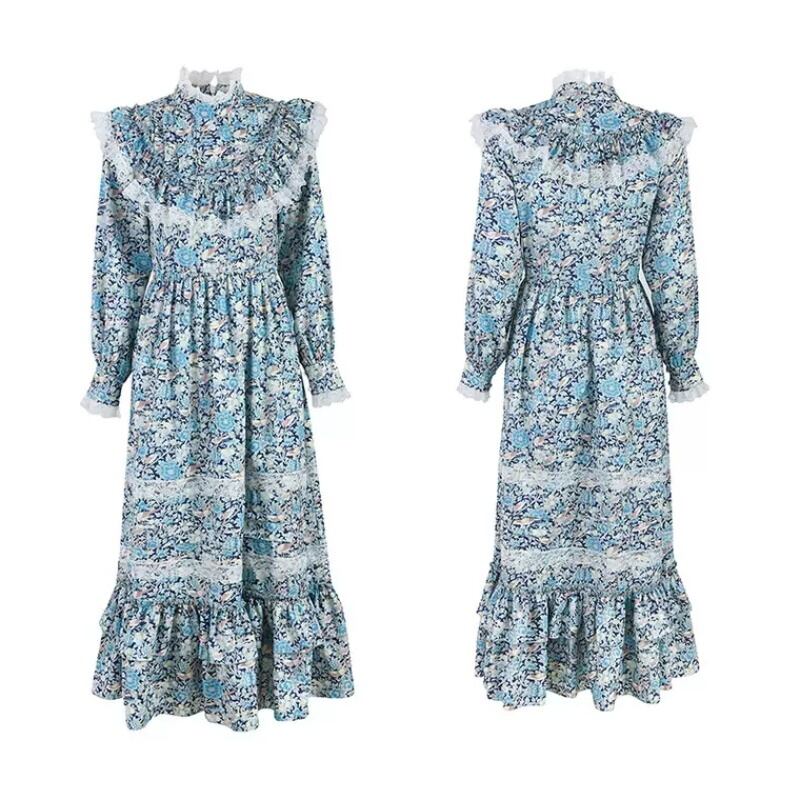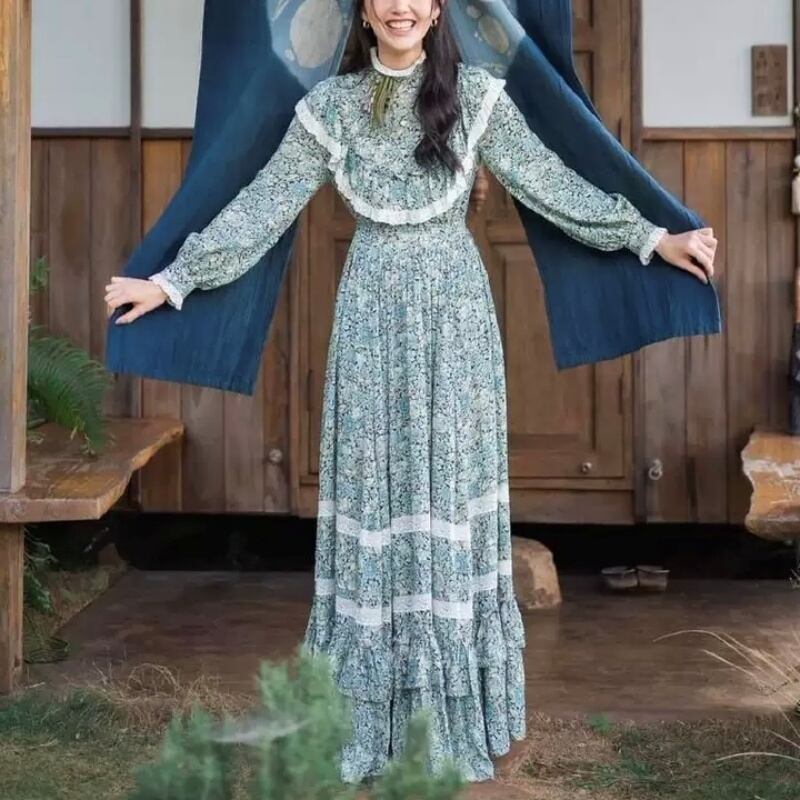 レトロクラシカル フリル 花柄 ロングワンピース *on107