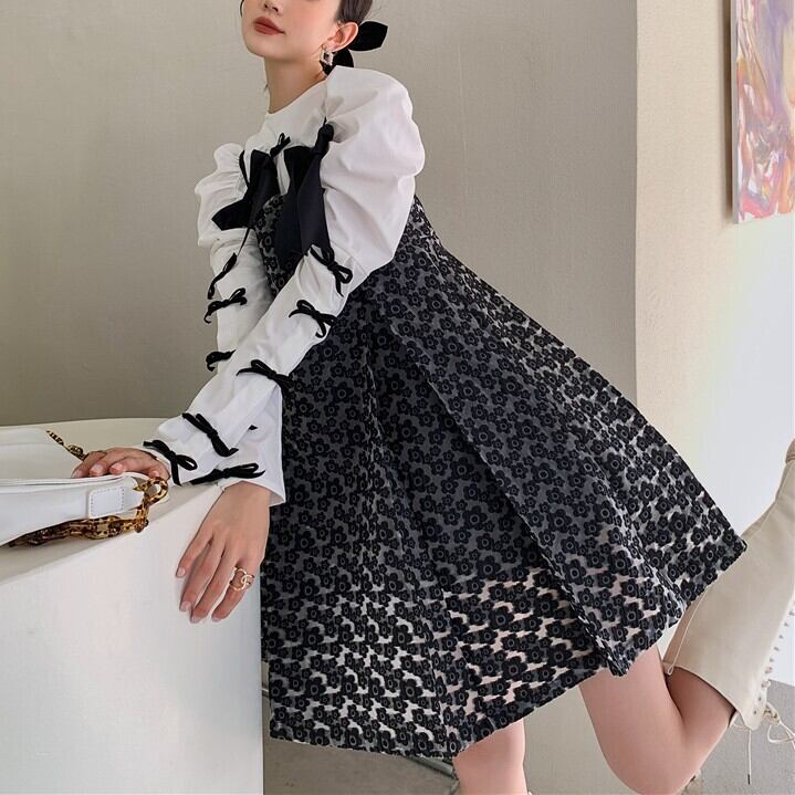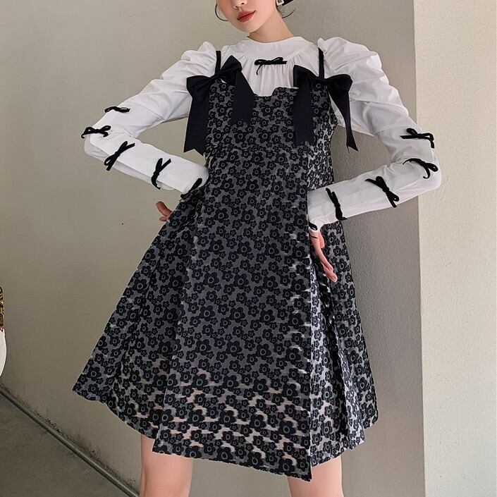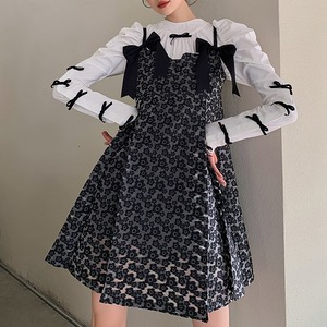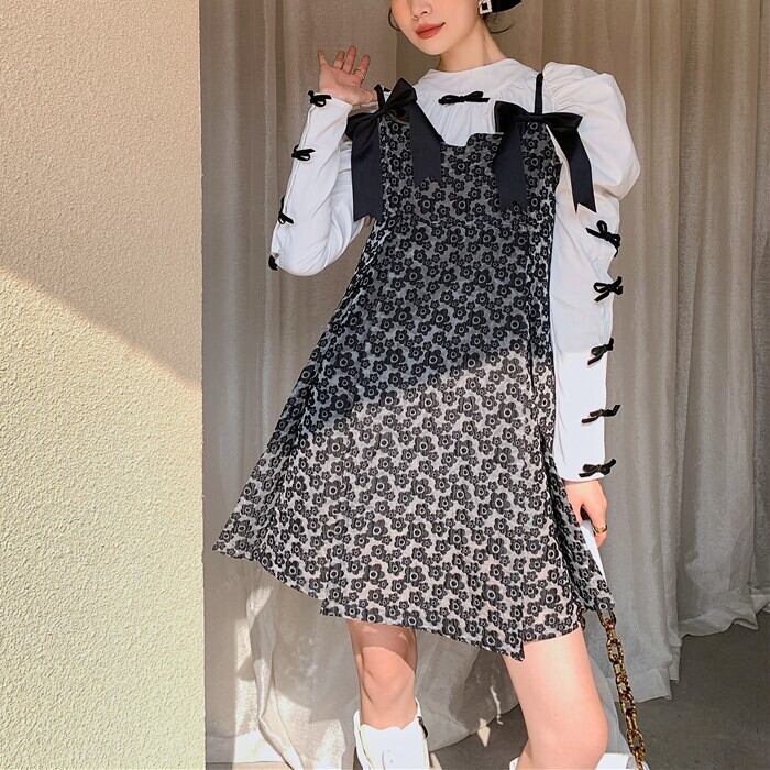 花柄 フローラル スリングワンピース リボン チュニック ブラック *se024
