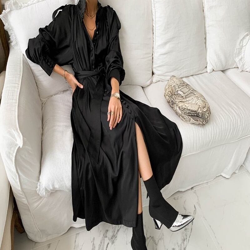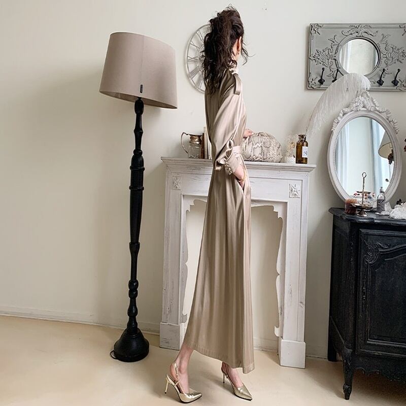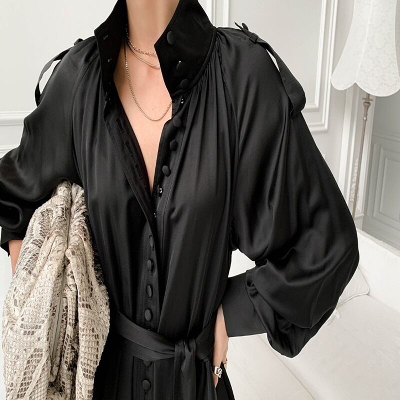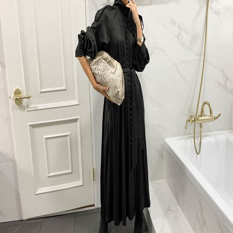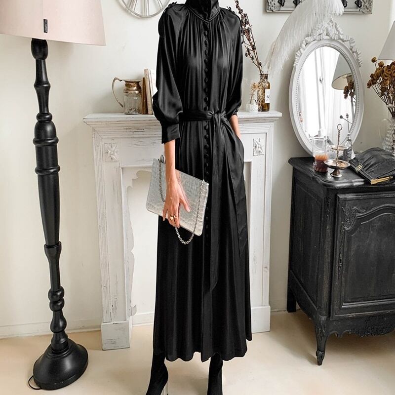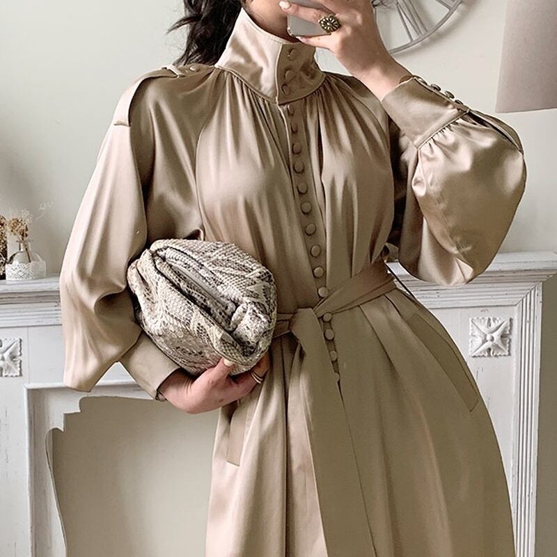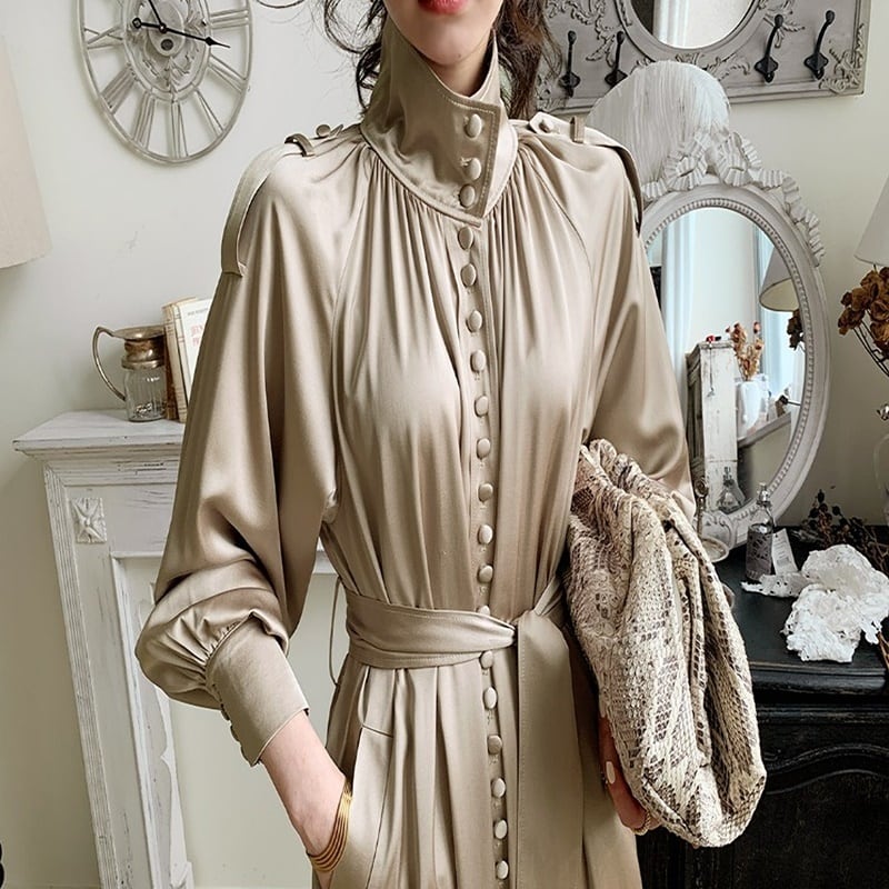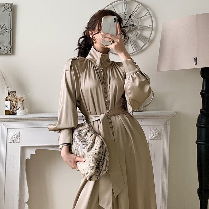 ハイネック レースアップ ウエストランタンスリーブワンピース *on114