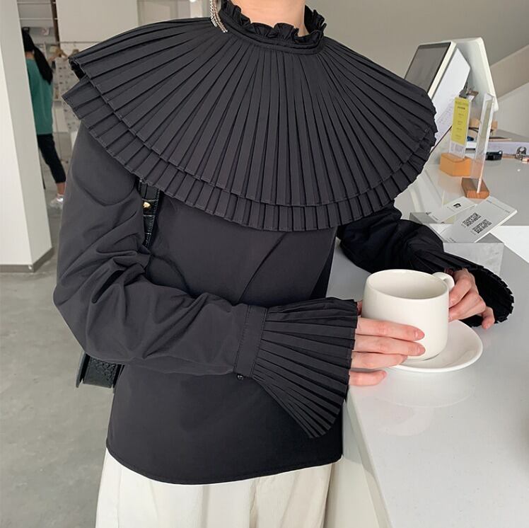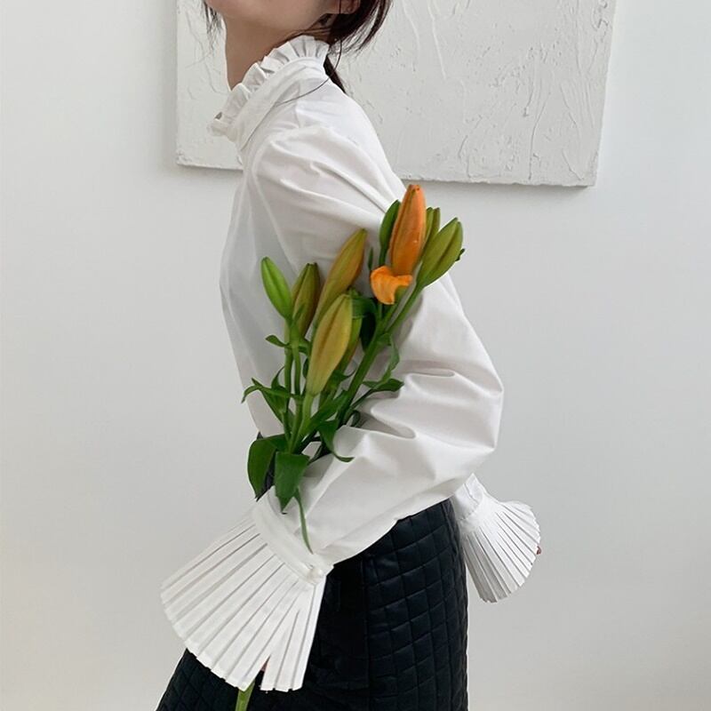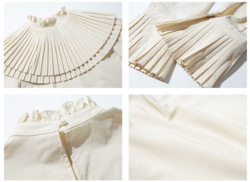 3カラー プリーツ フリル レトロデザイン ブラウス *bl123