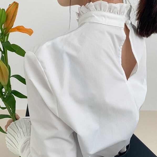 襟・スリーブがお洒落なホワイトシャツです。