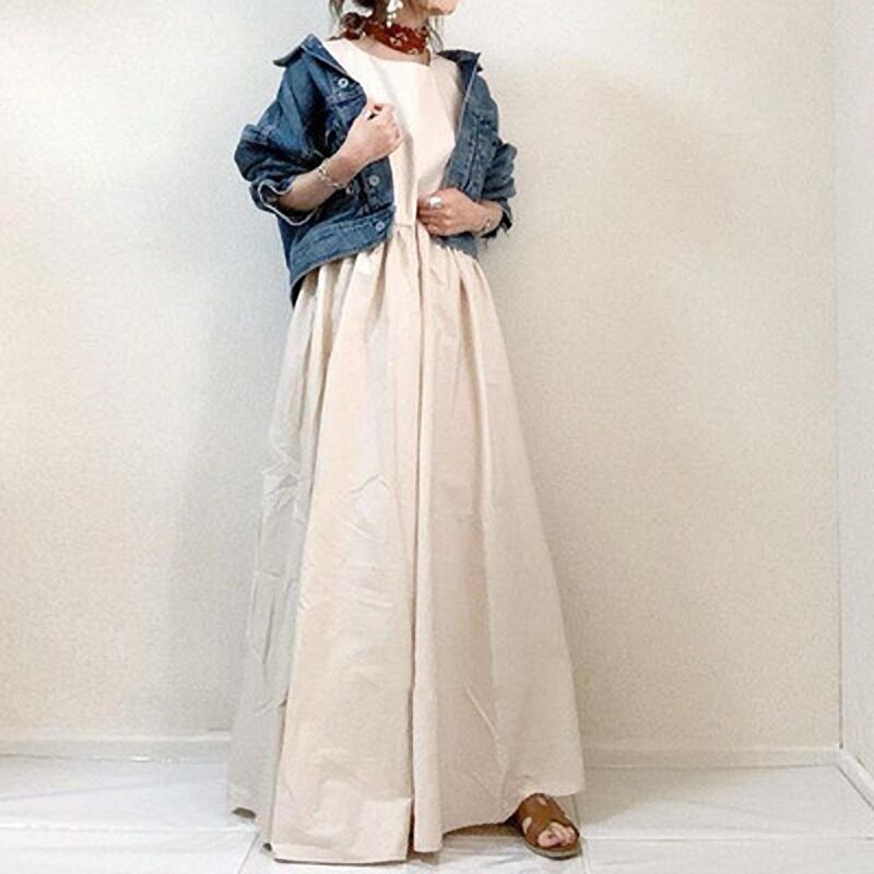 ボリューミーに広がるシルエットのノースリーブワンピース。