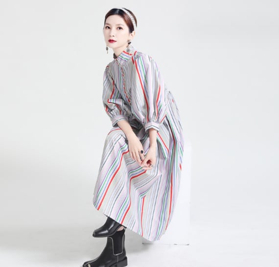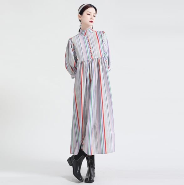 ハイネックでタイトに仕上げ、大きなパフスリーブでふんわり女性らしい印象に☆