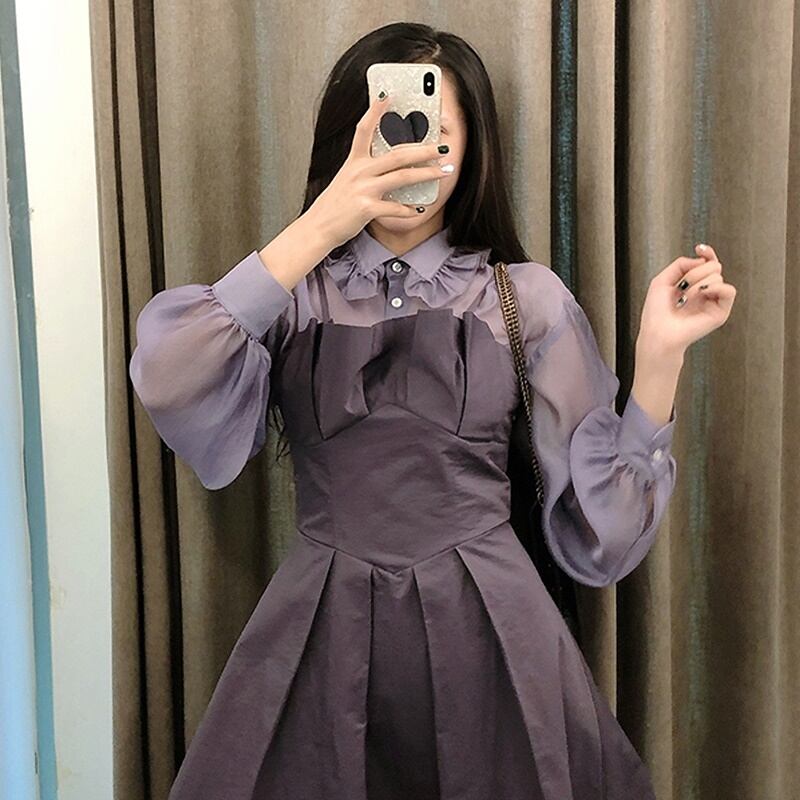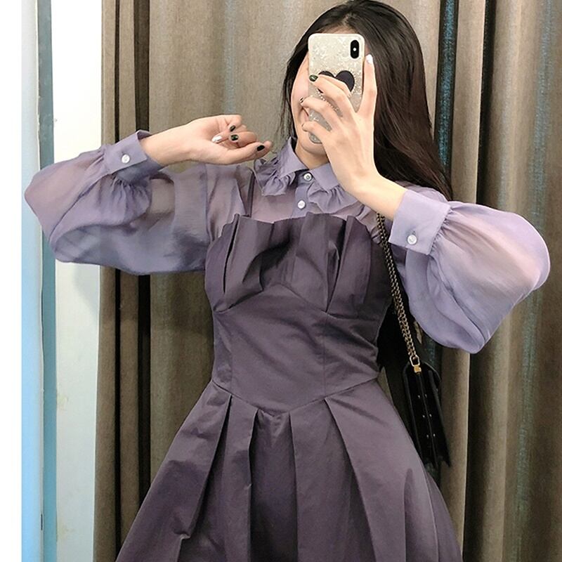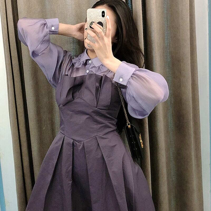 切り替えがあることですっきりとしたシルエットのドレスです。