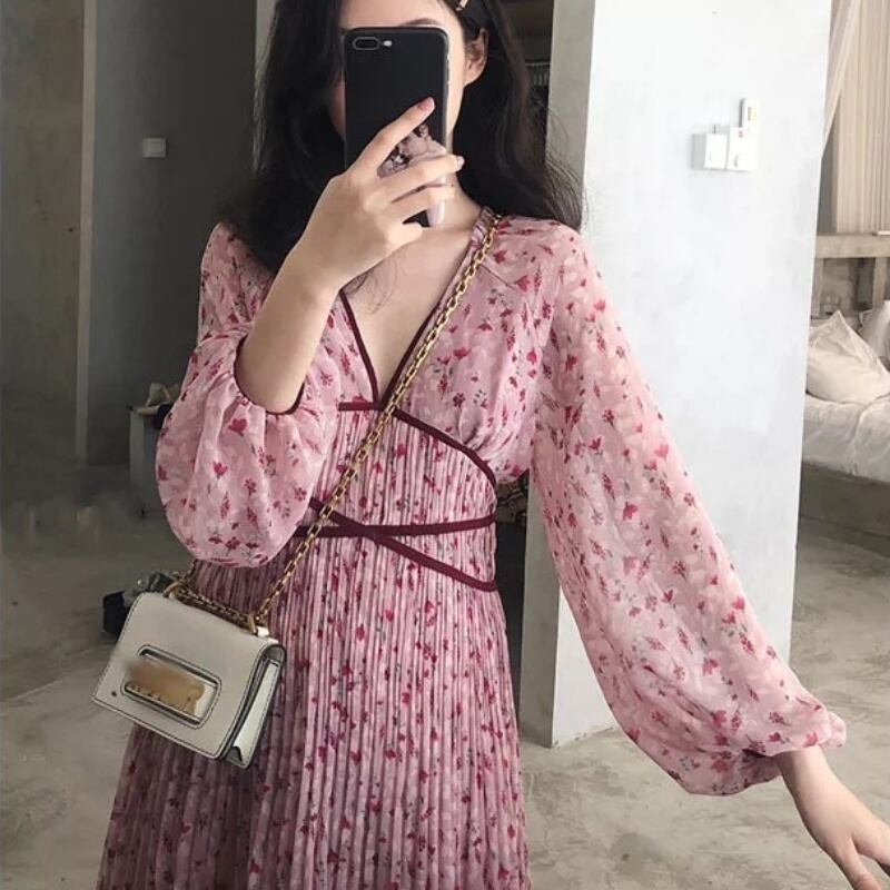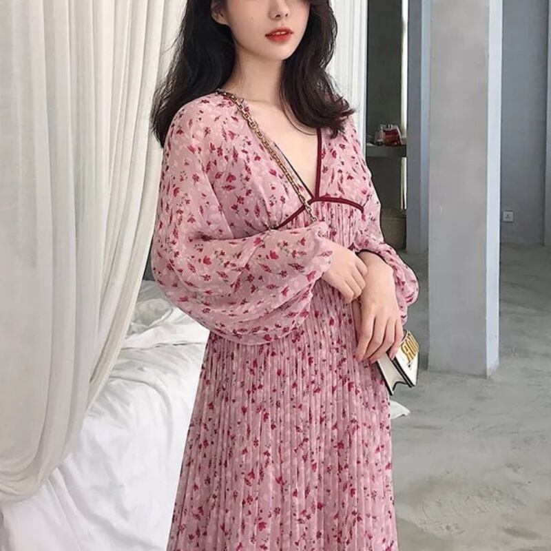 女性らしいシルエットを演出してくれるシャーリング、プリーツデザインワンピース。