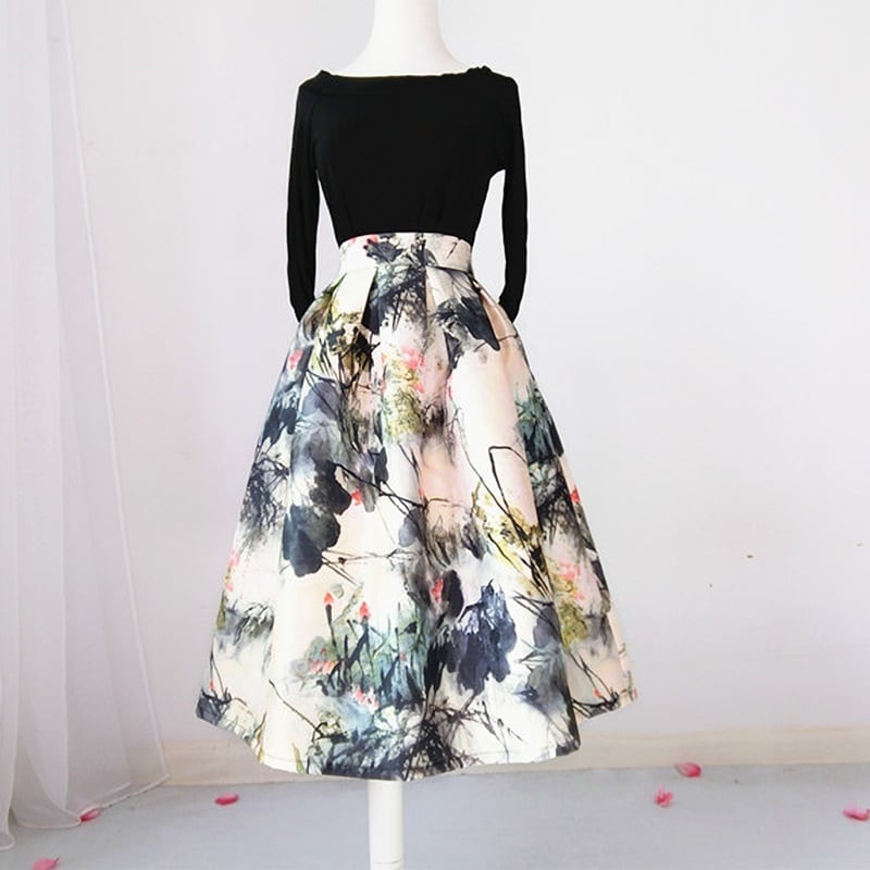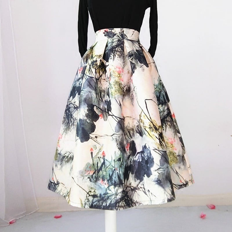 フローラル 水彩 プリント ミドル丈 スカート *sk070