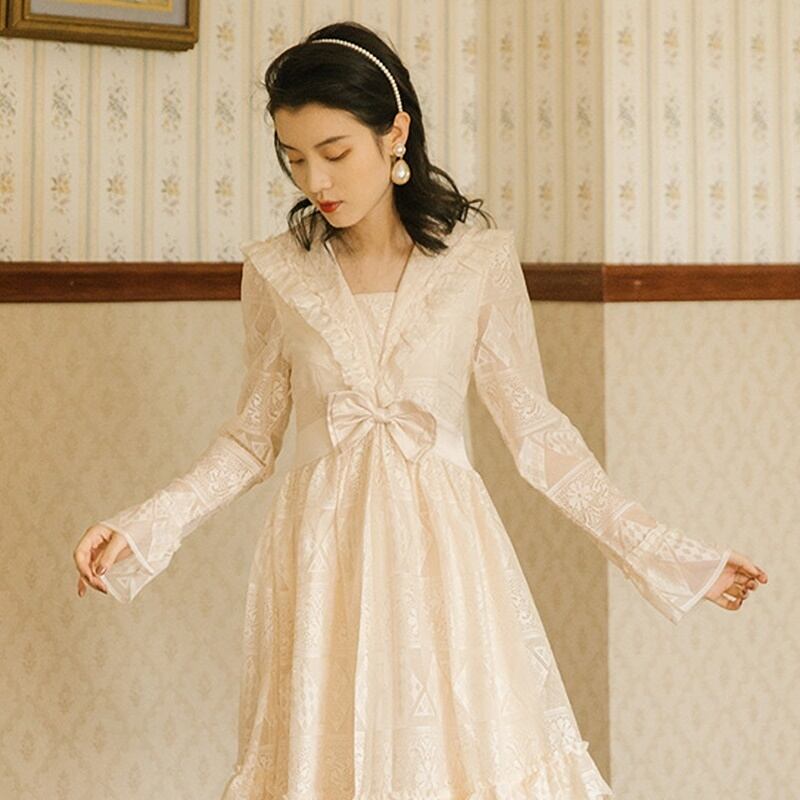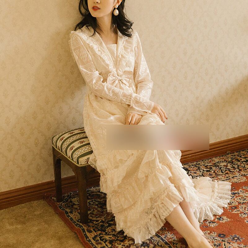 レトロ フェアリー フリル シアー ドレス ロングワンピース *on131