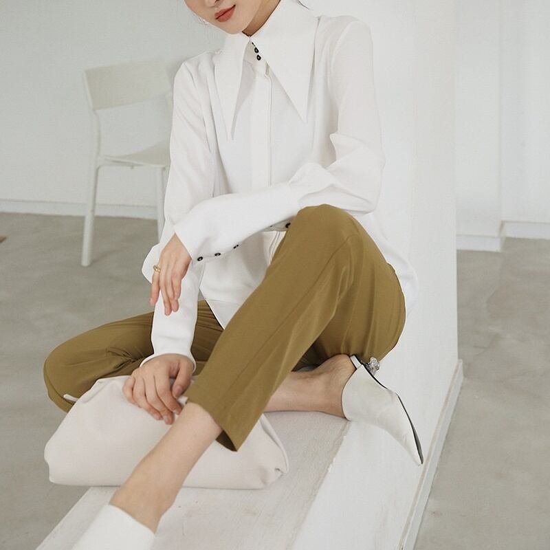 レトロ お洒落ボタン 無地 白 シャツ ブラウス *bl128