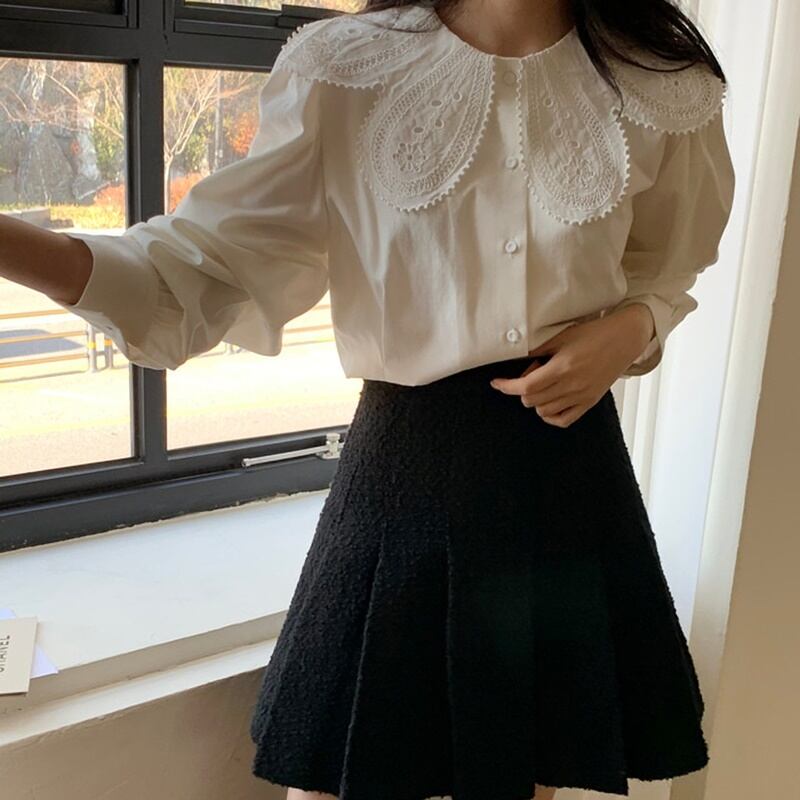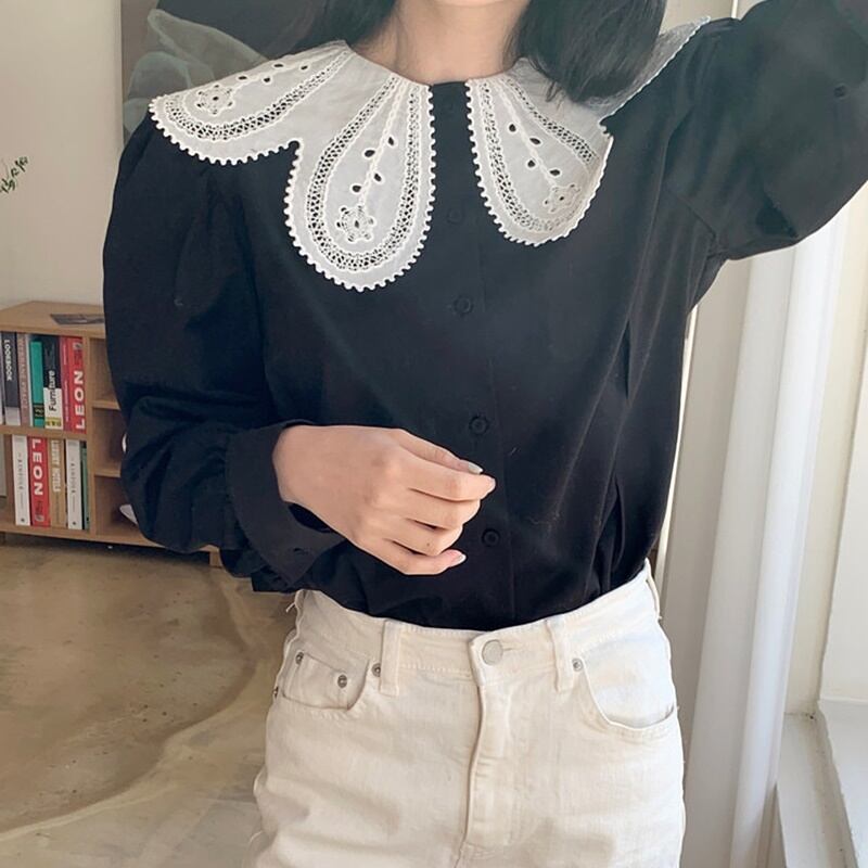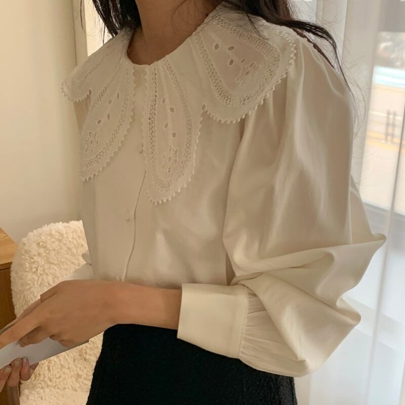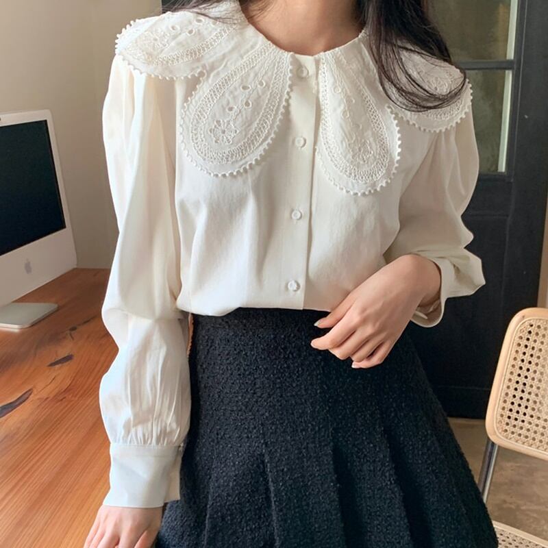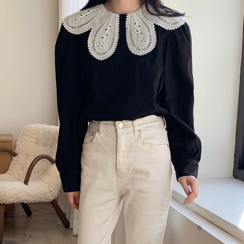 レトロ フラワー 刺繍 花襟 ラウンドネック シャツ ブラウス *bl132