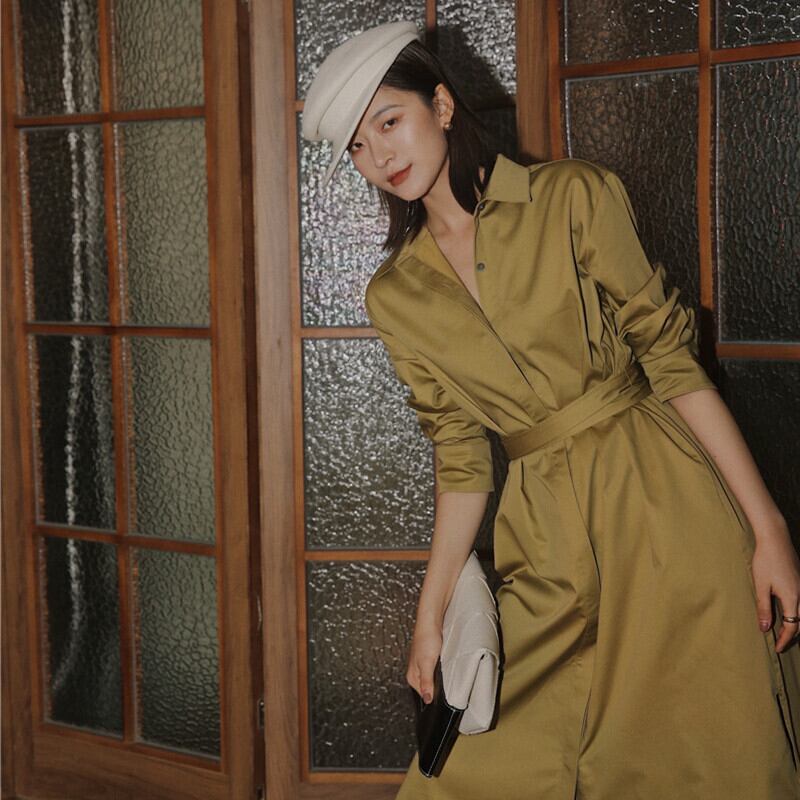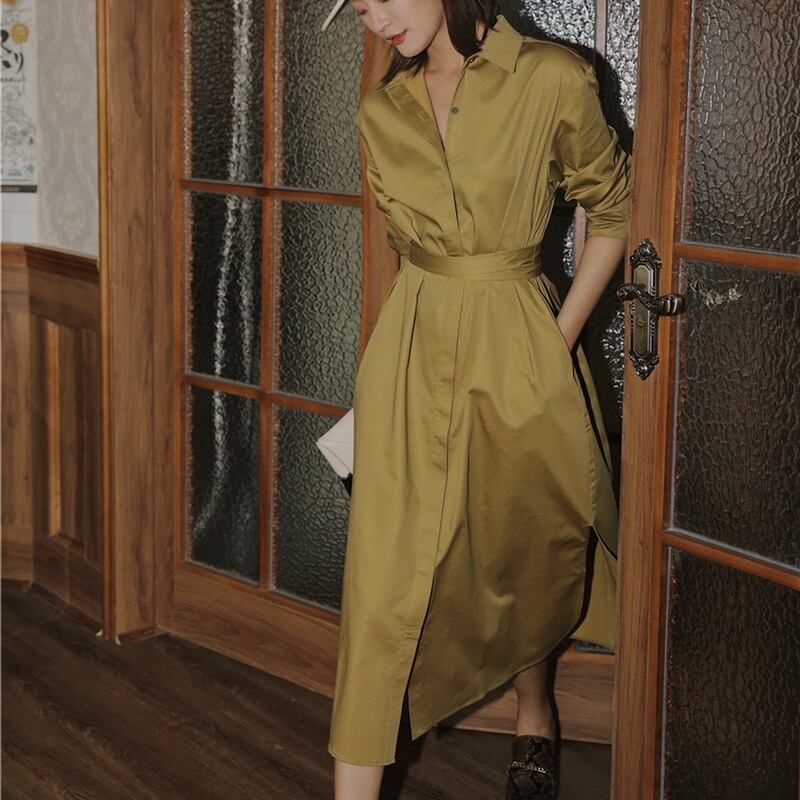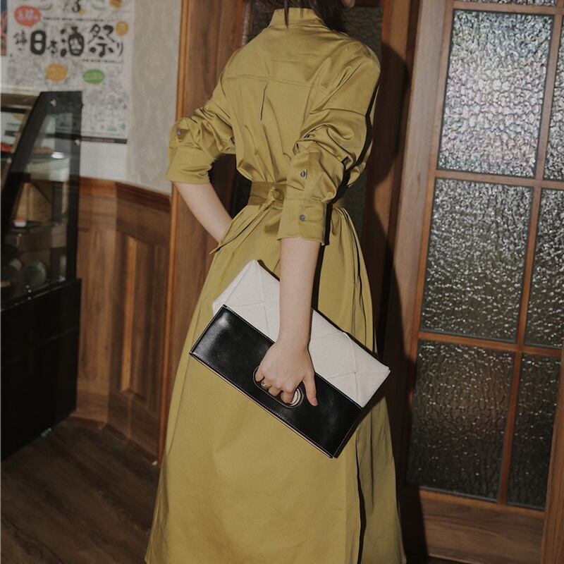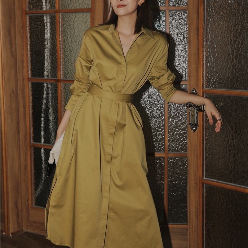 シンプル ハイウエスト ロング シャツワンピース *on143