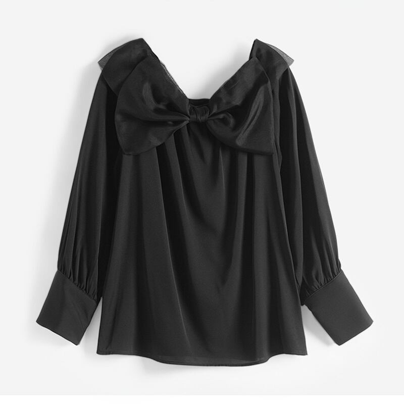 2カラー シンプル リボン プルオーバー シャツ ブラウス *bl140