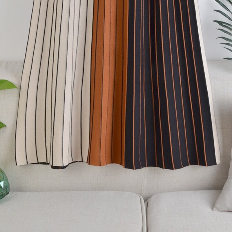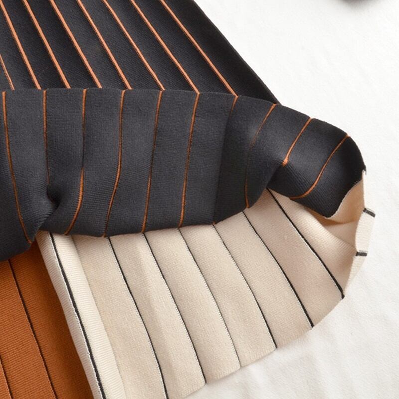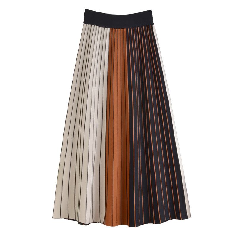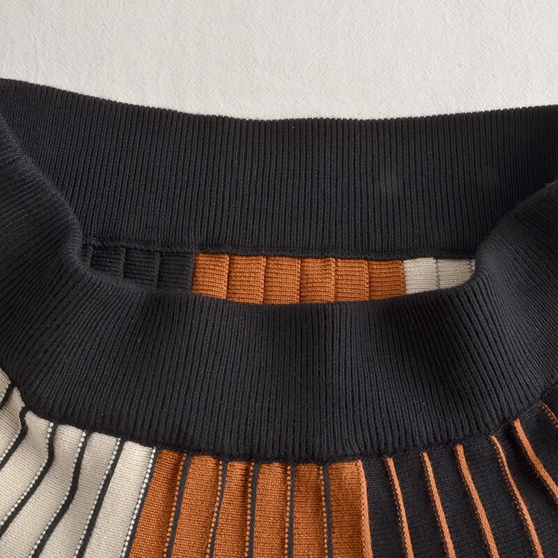 ストライプ プリーツ ニット ミドル丈 スカート *sk075