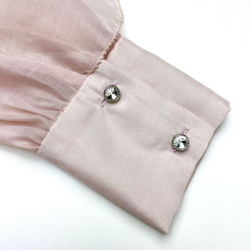 フリル リボン シアー シフォン シャツ ブラウス *bl150