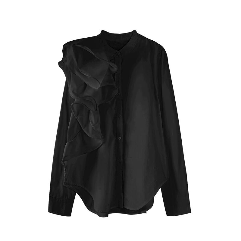 2カラー シンプル フリル 長袖 シャツ ブラウス *bl151