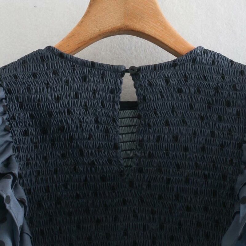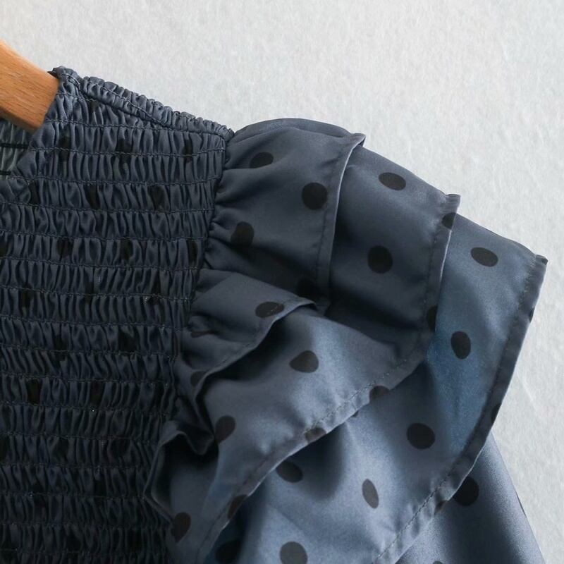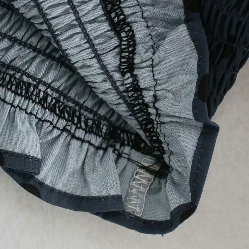 流行に左右されないドット柄に、フリルが可愛らしさを演出してくれて、女性の魅力を引き出してくれます。