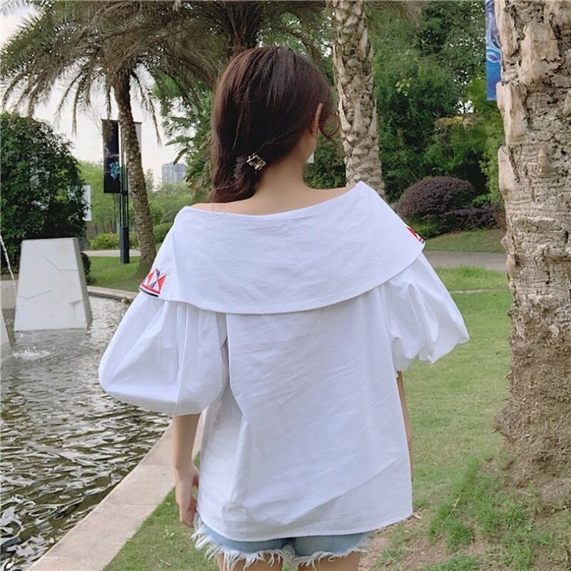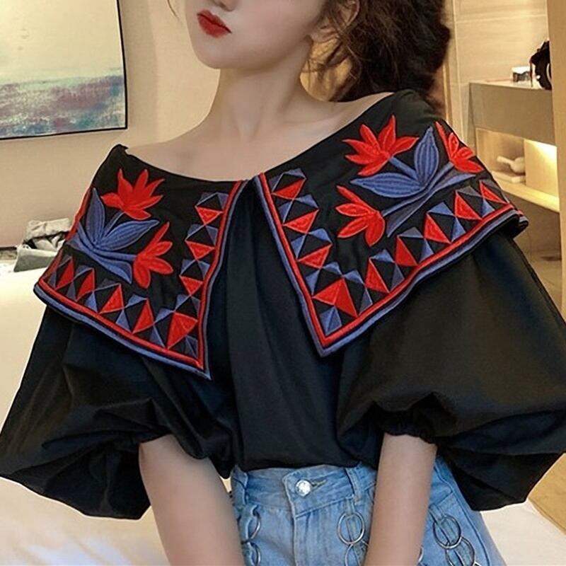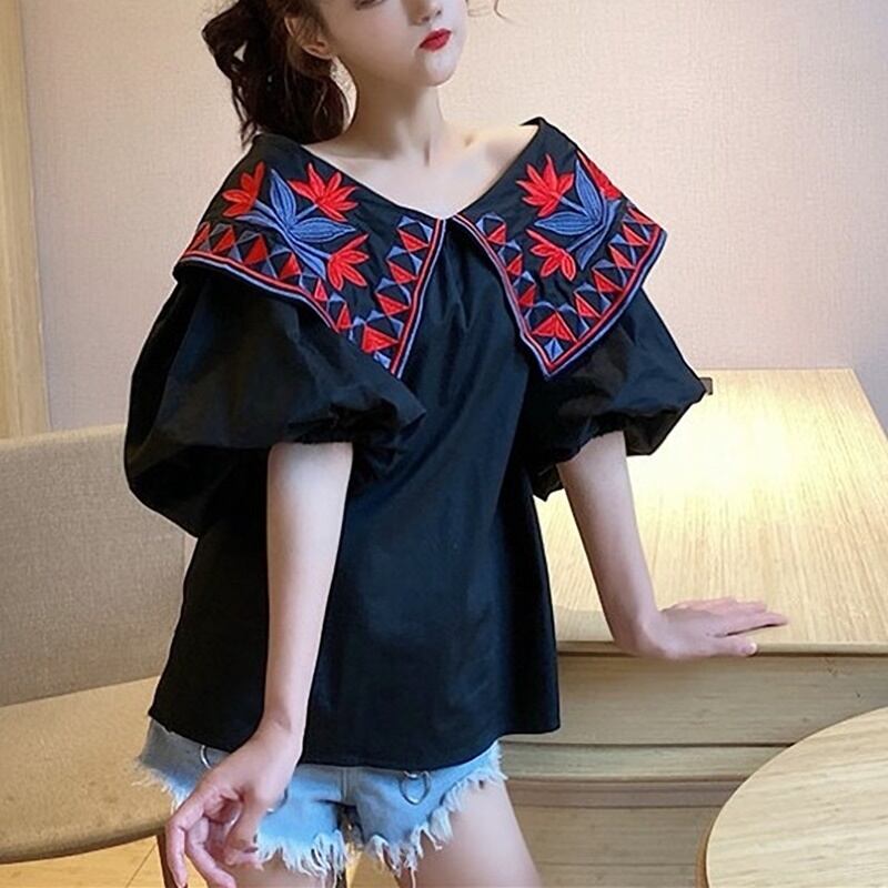 2カラー フローラル 刺繍 肩見せ ボリューム袖 シャツ ブラウス *bl155