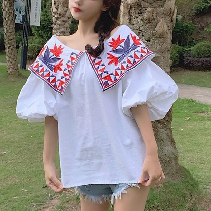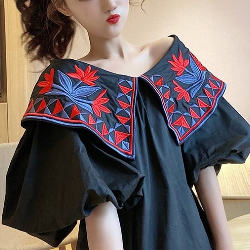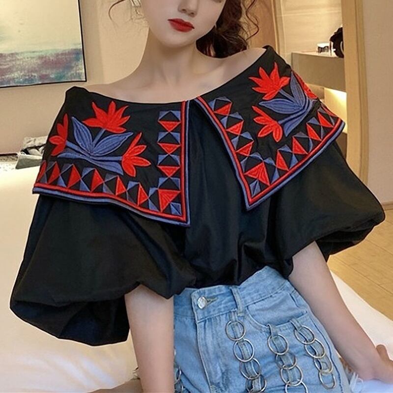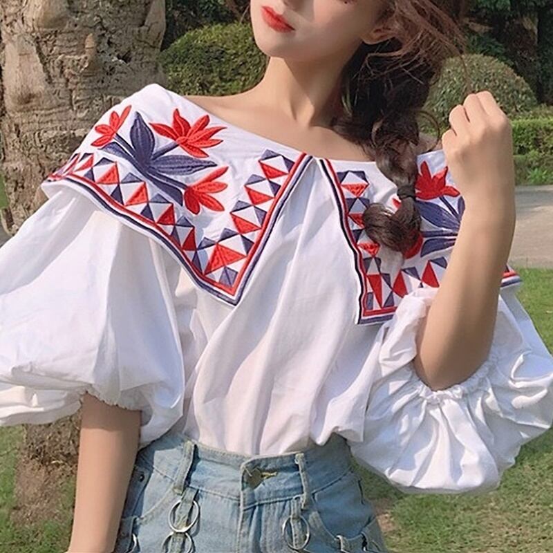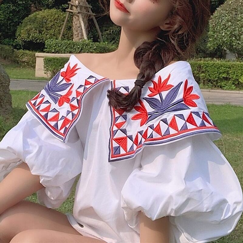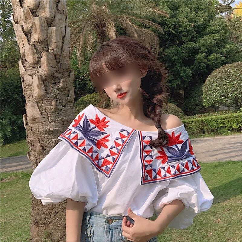 民族調の花柄刺繍のオフショルダーブラウスです。