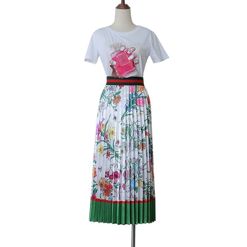 花柄 イラスト プリント プリーツ ミドル丈 スカート *sk082