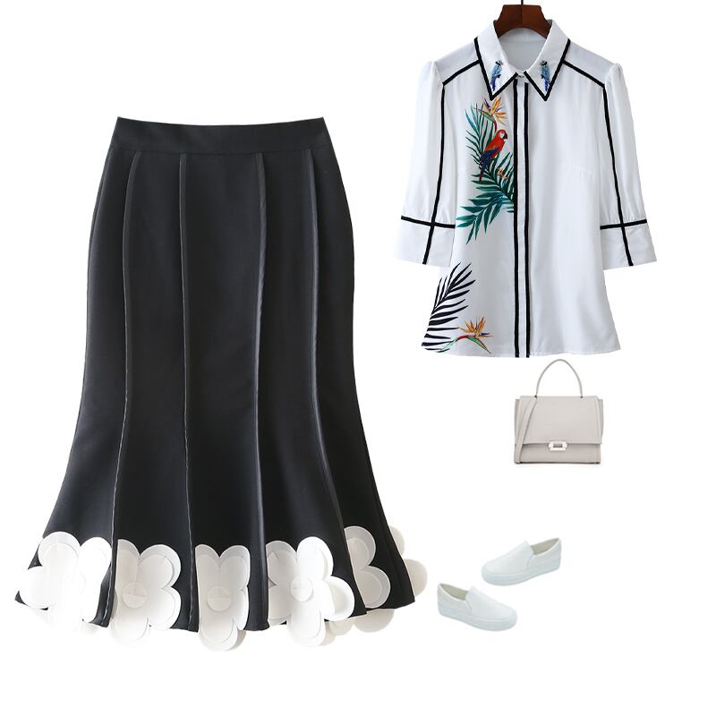 フラワー アップリケ プリーツ バルーン スカート *sk083