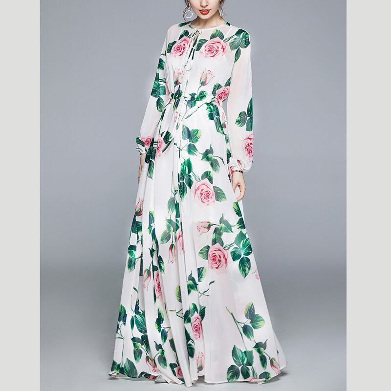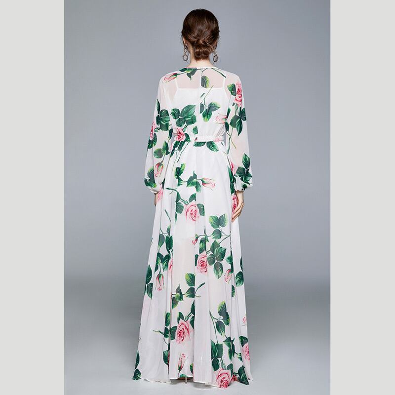 花柄 薔薇 プリント シフォン ロング ワンピース *on153