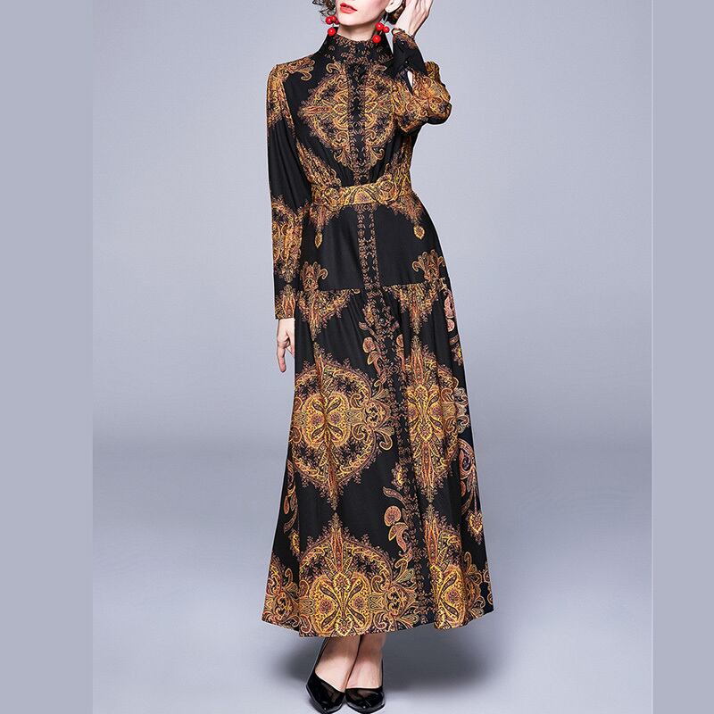 幾何学 民族調 チャイナ ドレス ロングワンピース *on155