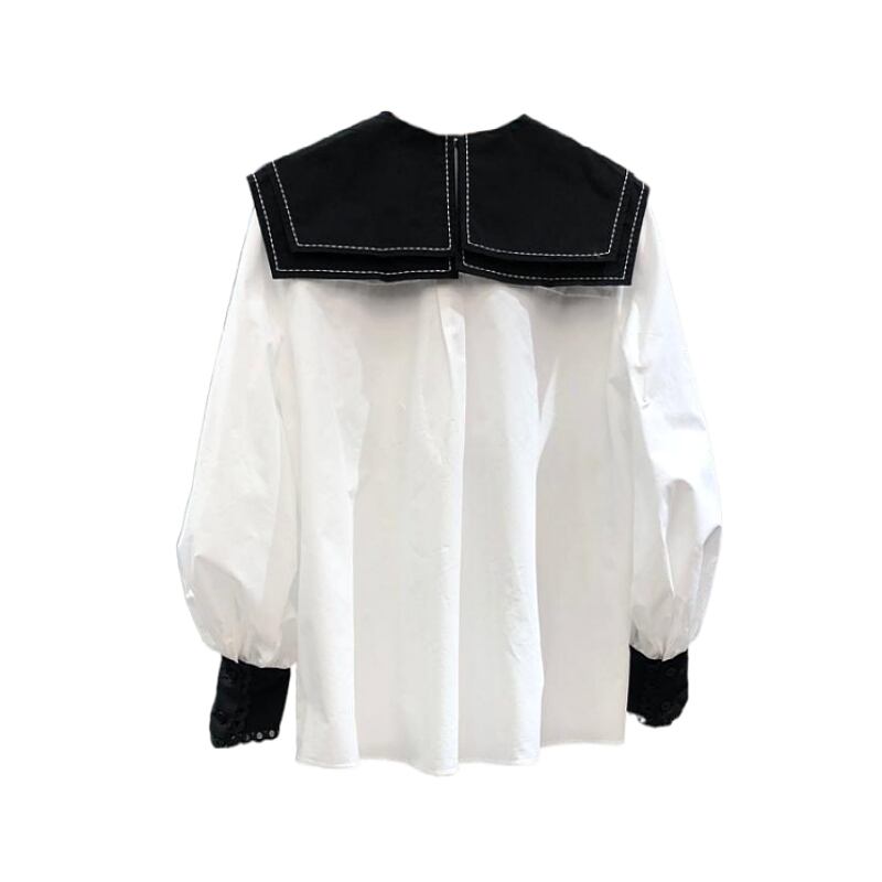 シンプル 丸襟 ボリューム袖 シャツ ブラウス *bl159