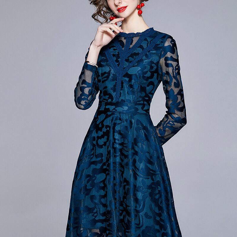 スリーブや裾にほんのり透け感があって、上品に素肌が見えるエレガントな一着です。