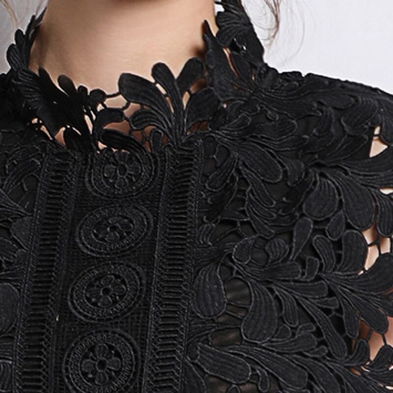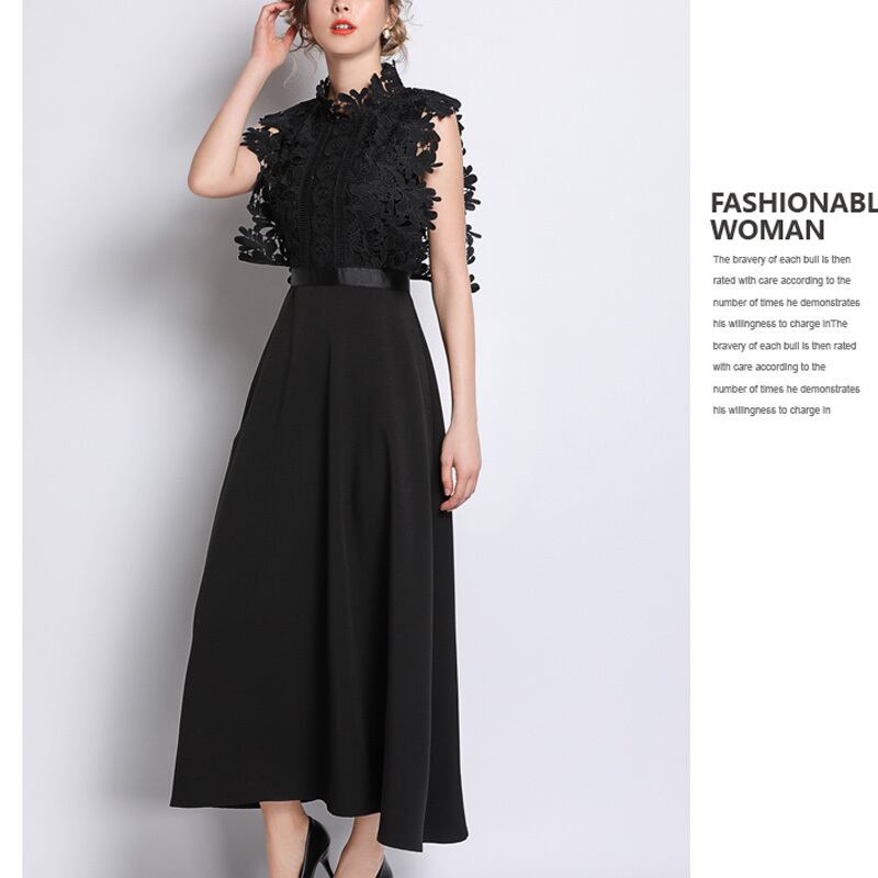 黒一色でもノースリーブでレース使いが軽やかに見えて重くなりすぎません。