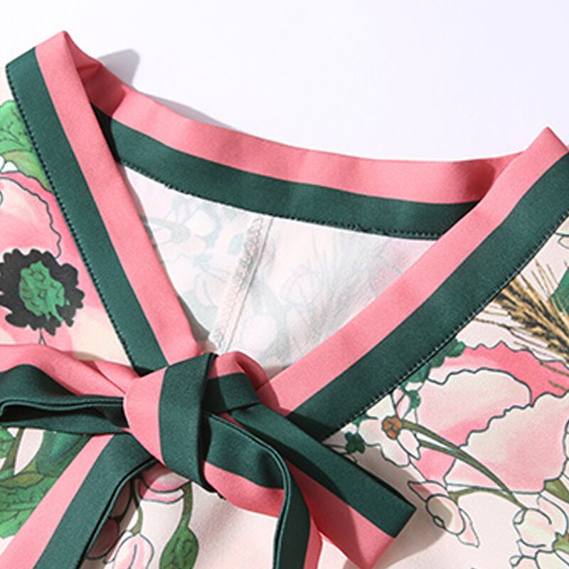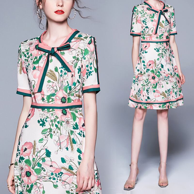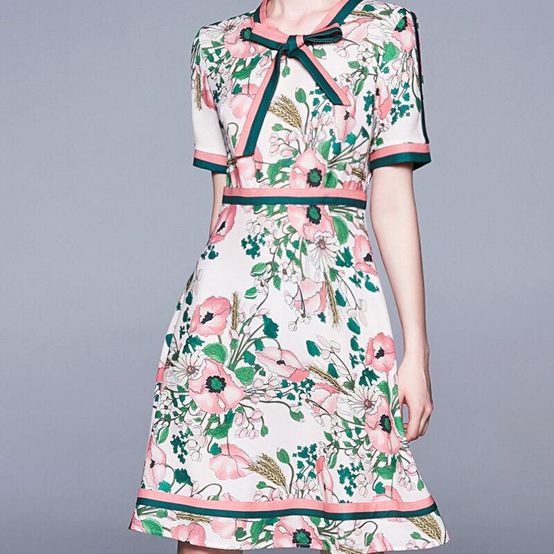 フローラル リボン ミドル丈 半袖 ワンピース *on171