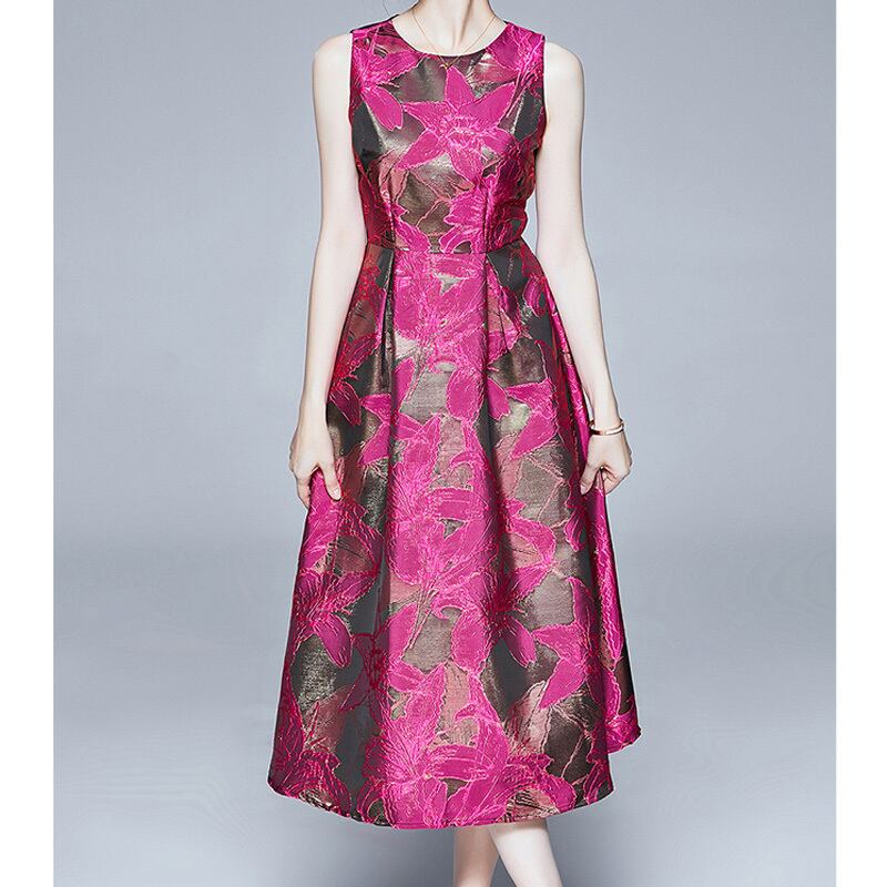 フローラル 刺繍 ノースリーブ ドレス ワンピース *on173