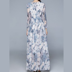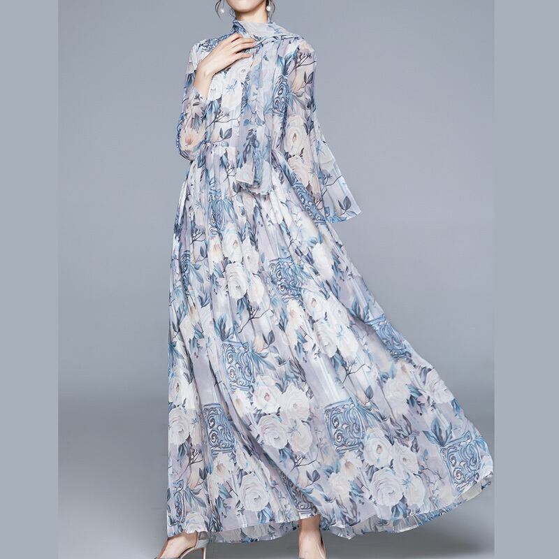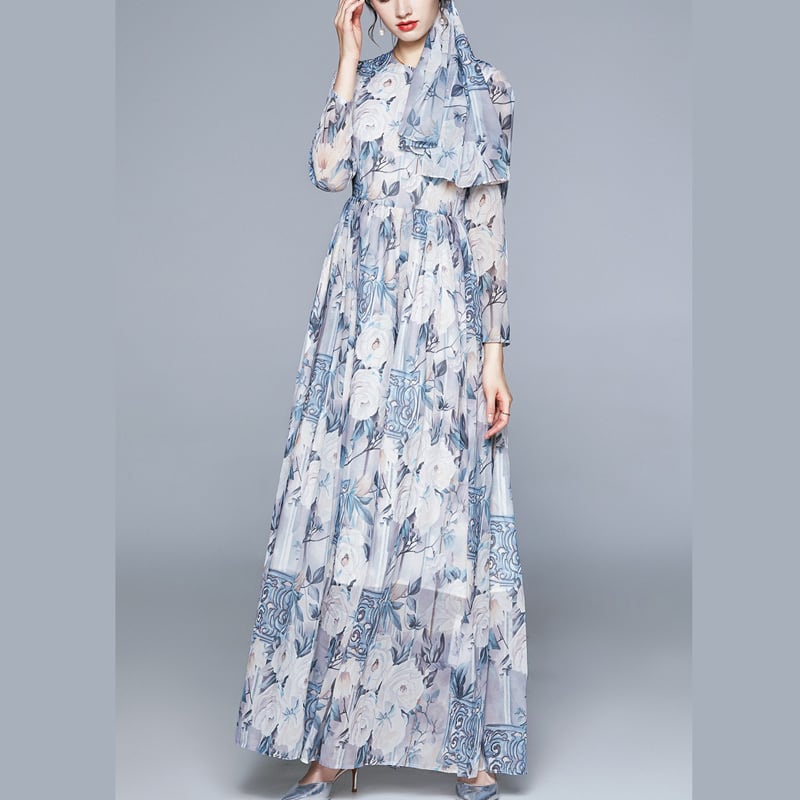 フローラル スカーフ付き シフォン ロングワンピース *on174
