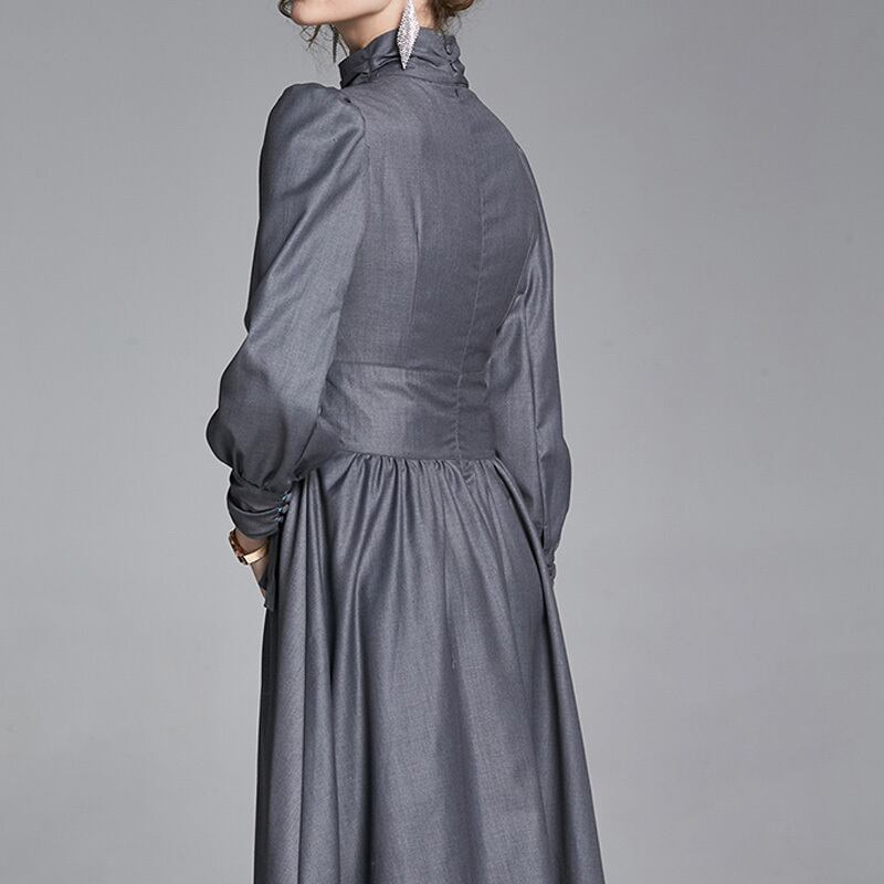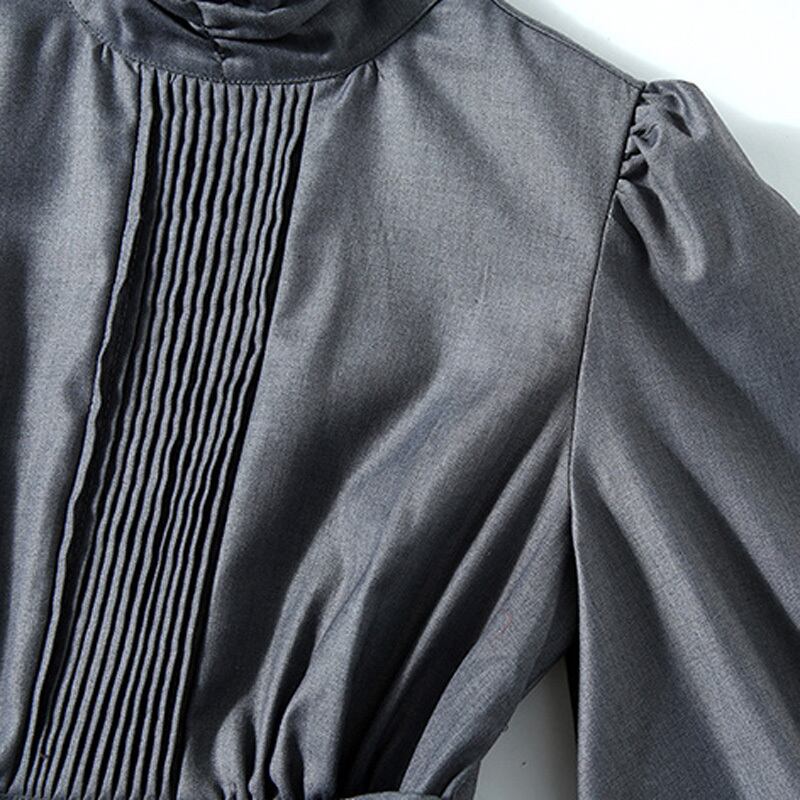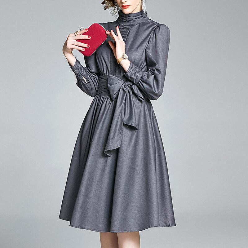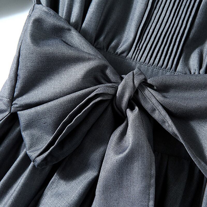 光沢感のある素材で、ウエストリボンやギャザーがアクセントになっています。