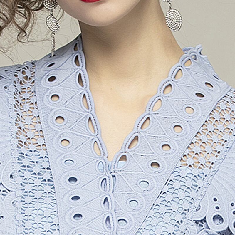 パンチングレース シアー Vネック ワンピース *on179