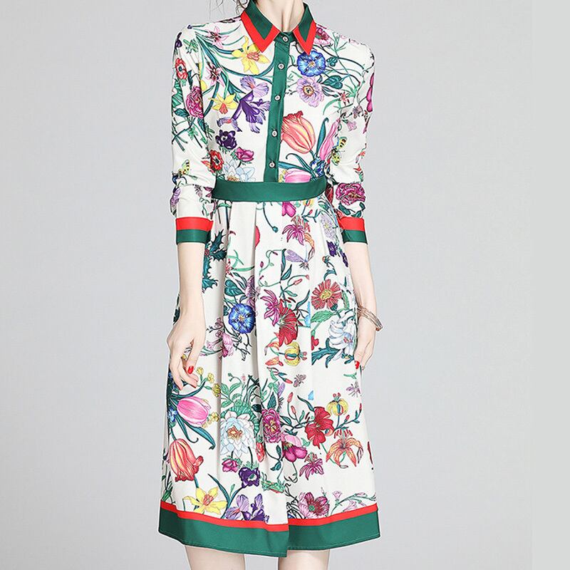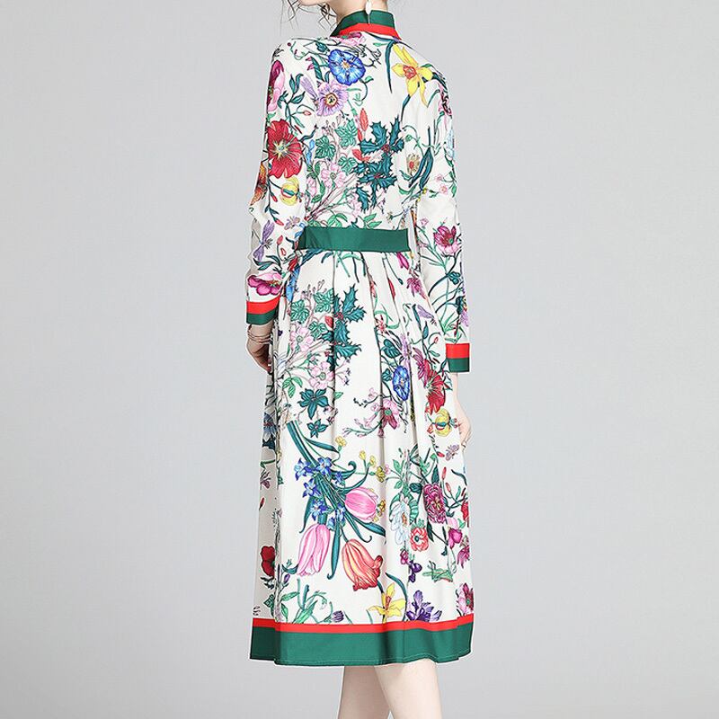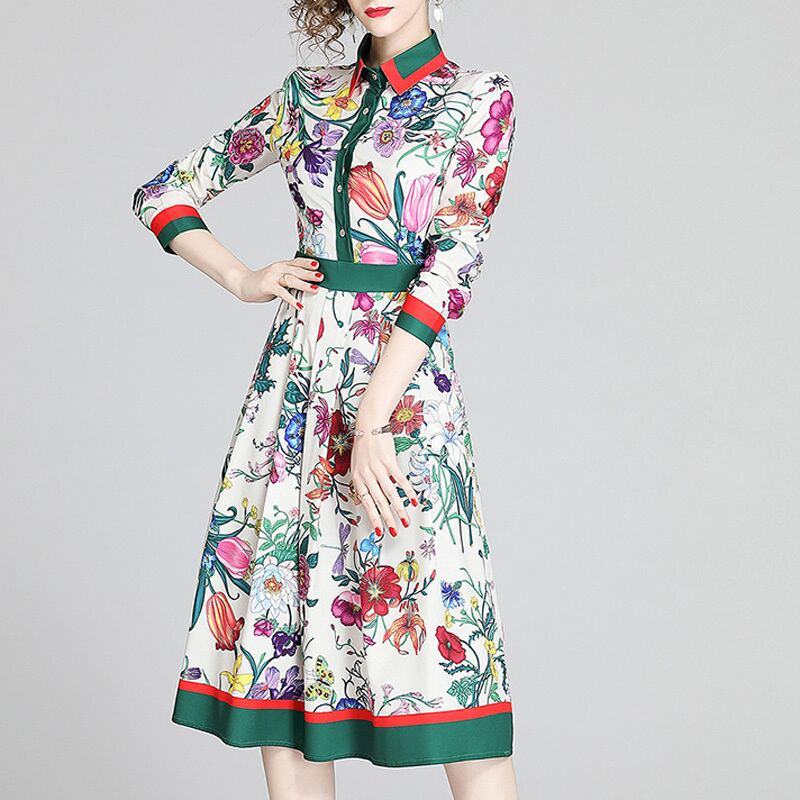 レトロ フローラル ミドル丈 長袖 ワンピース *on180