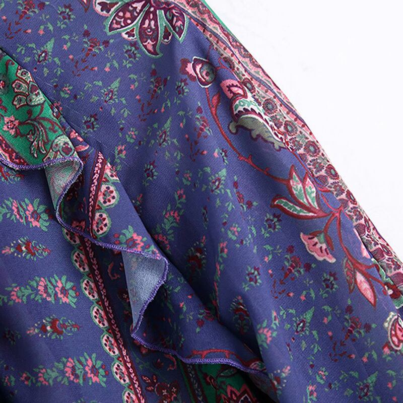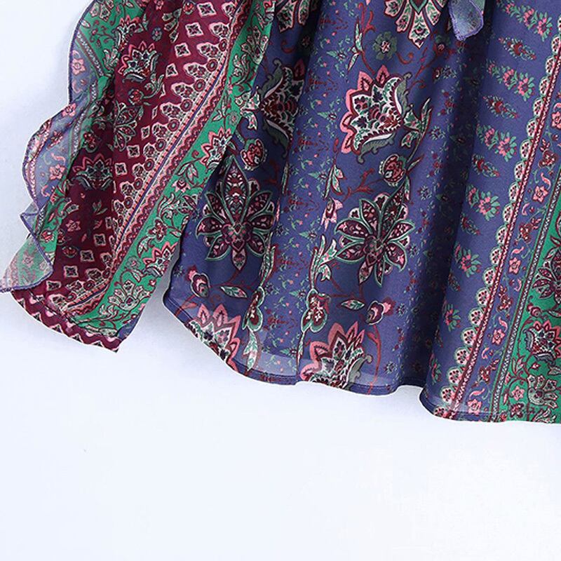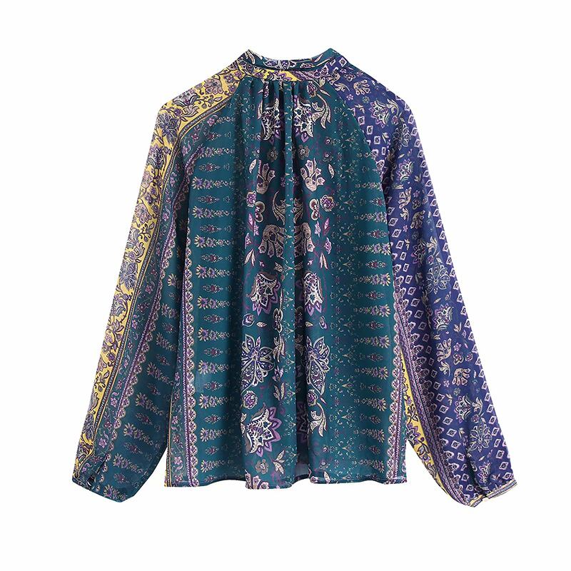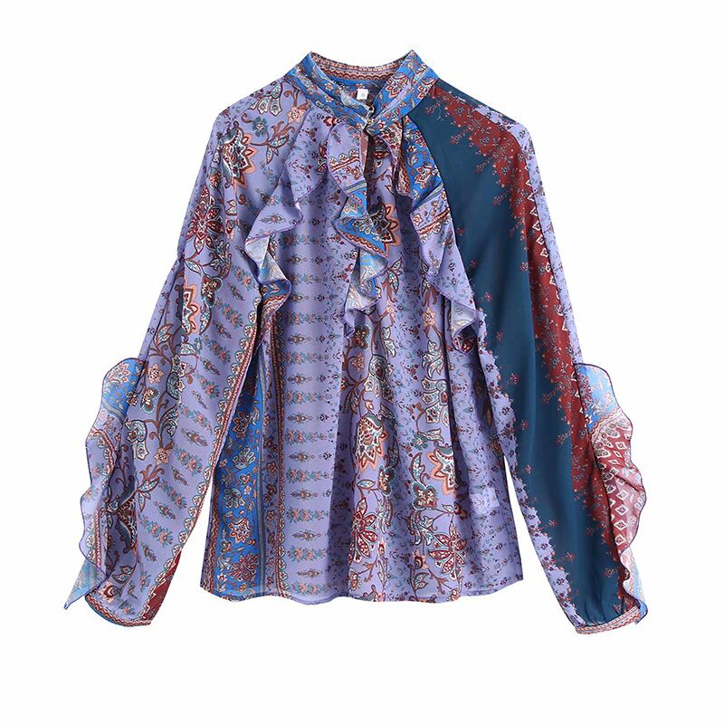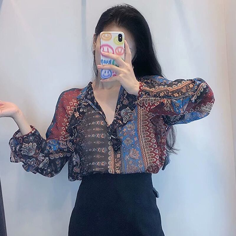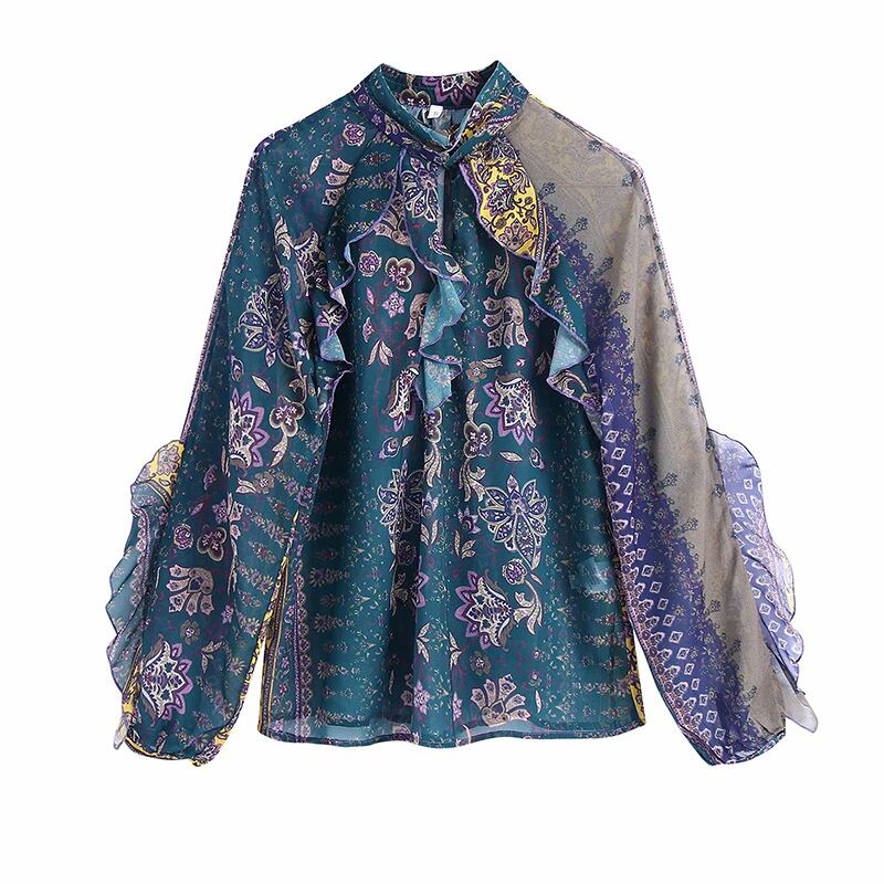 4カラー 民族柄 フリル シフォン シャツ ブラウス *bl163