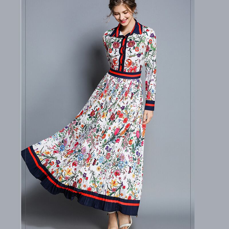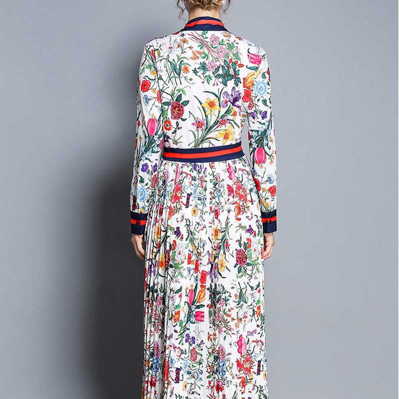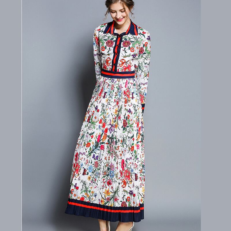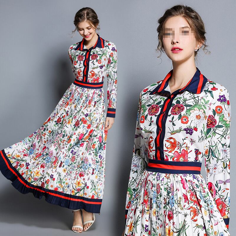 レトロ フローラル ボーダー プリーツ ワンピース *on161