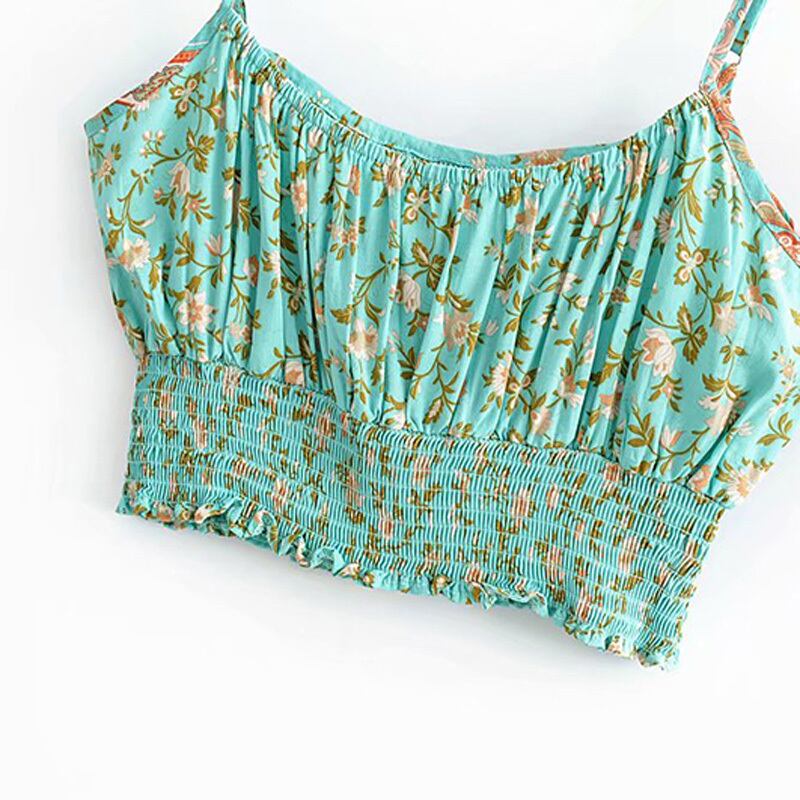 ノースリーブでショート丈のトップスは涼し気な印象。